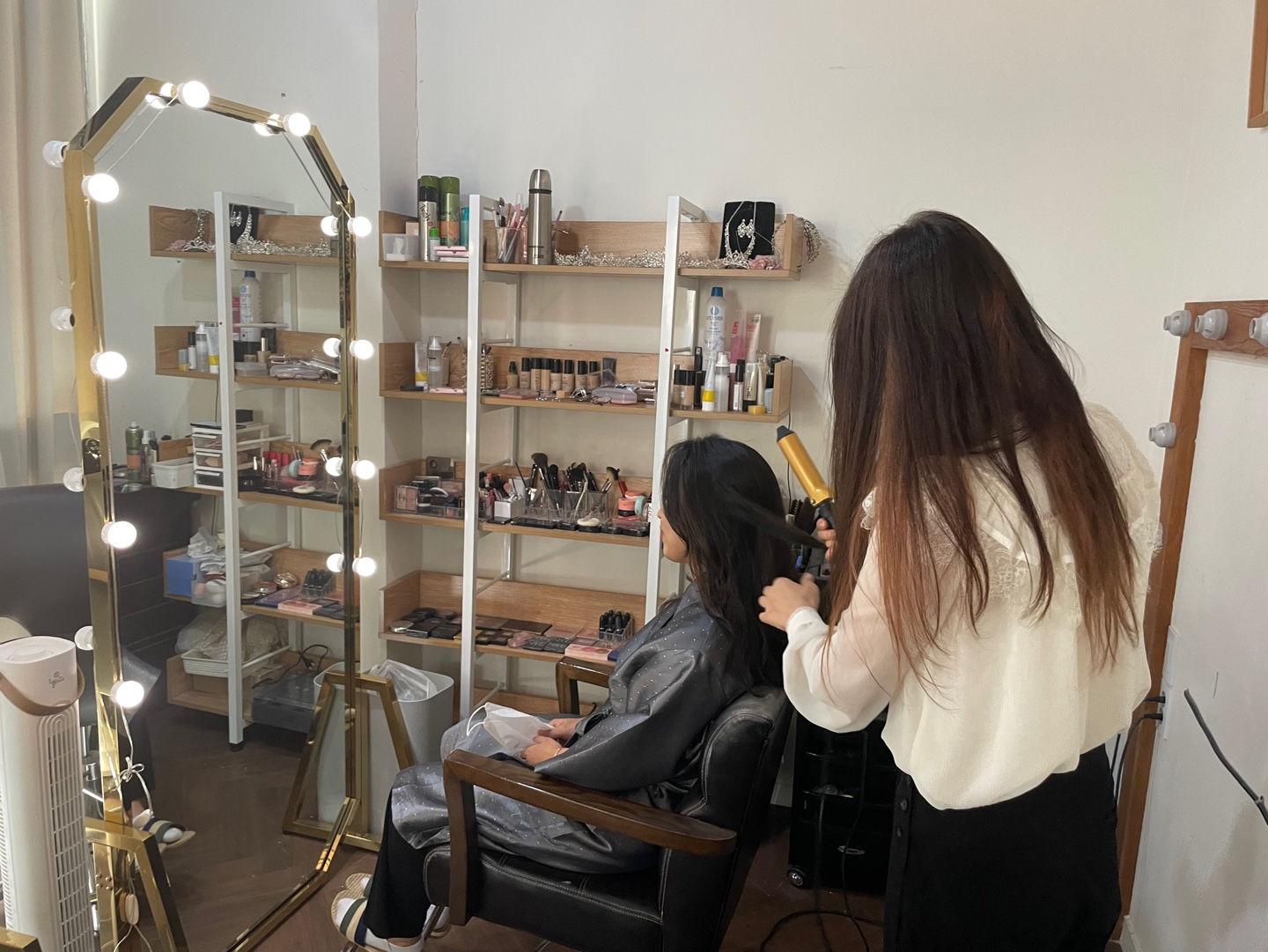 촬영 중간에도 와서 헤어와 메이크업도 수정해줘요 !