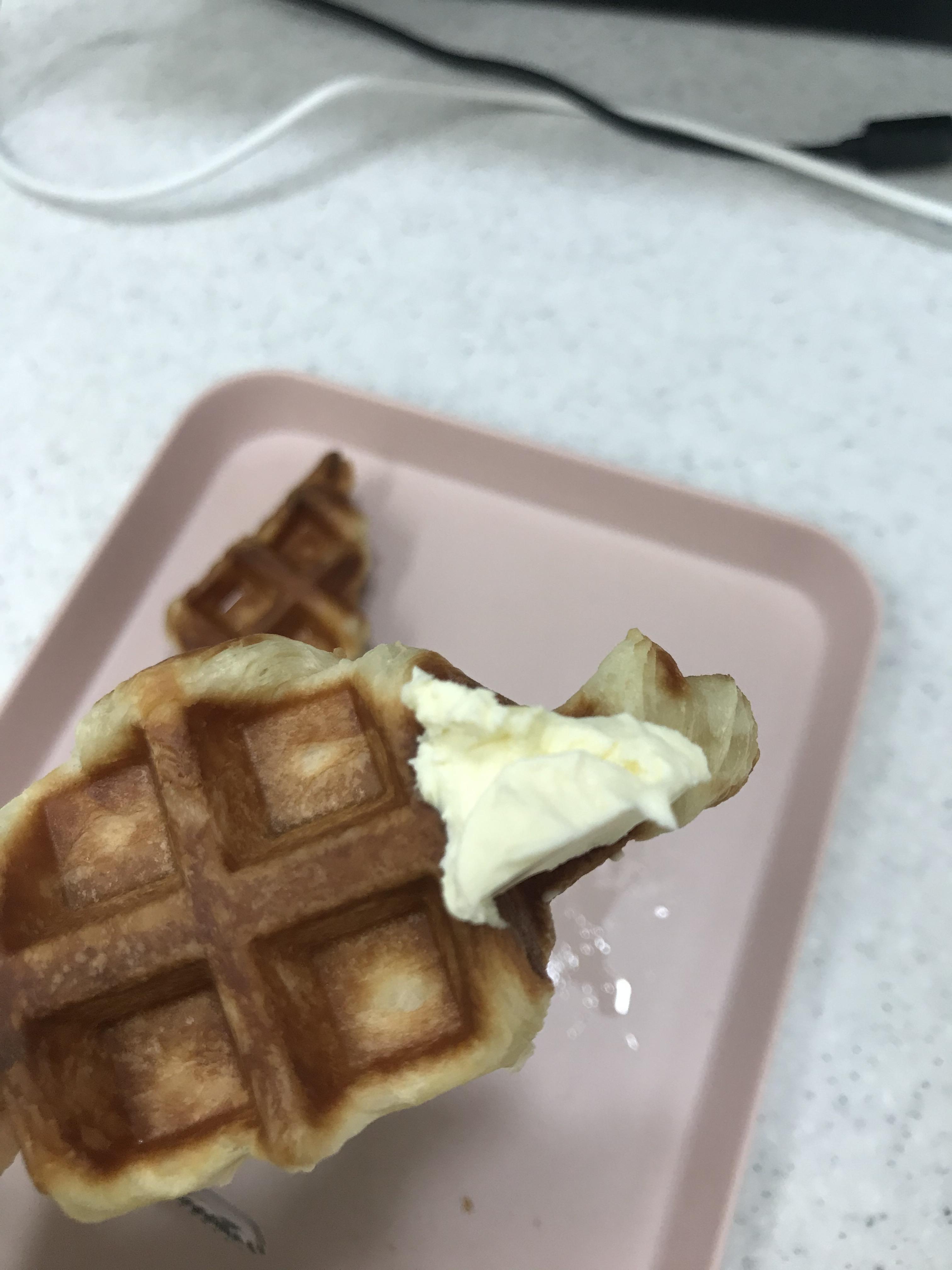 꺼내놓고 30분 정도 후 눌러보니 해동이 된 거 같아서 바로 와플기와 에어프라이어에 넣었습니다 ;;;;