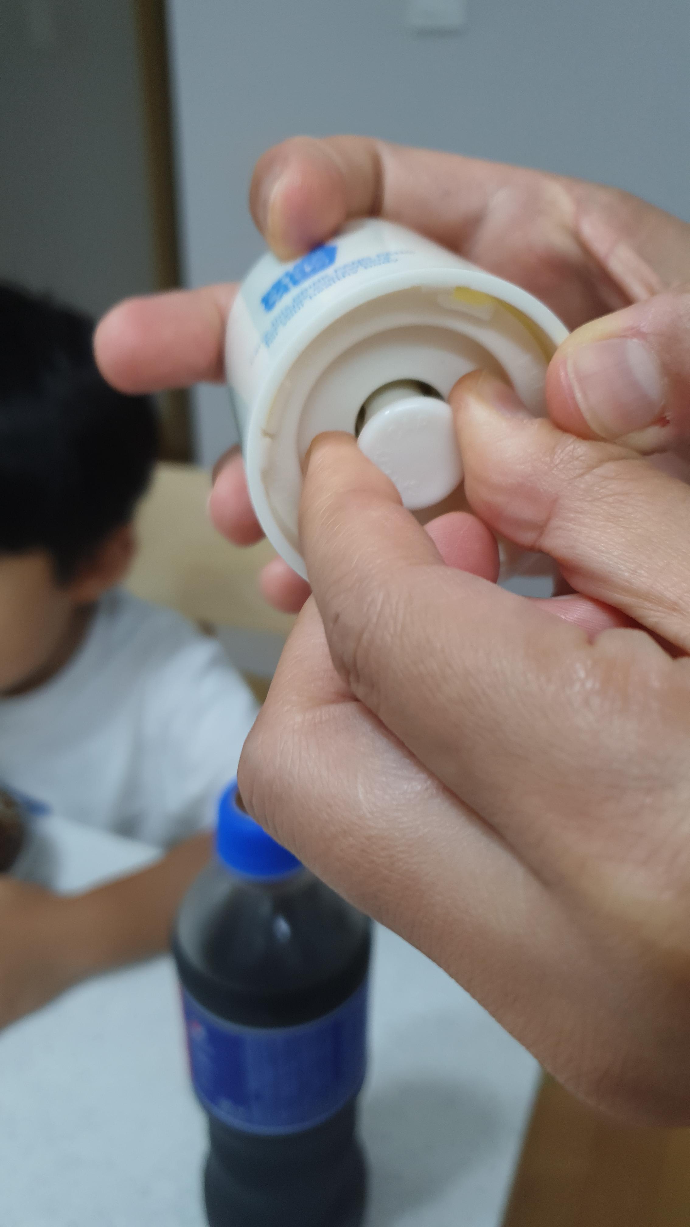 안전캡을 뺀 뒤 음료수 위에 올려놓고 꾸욱~ 눌러주면 끝!!