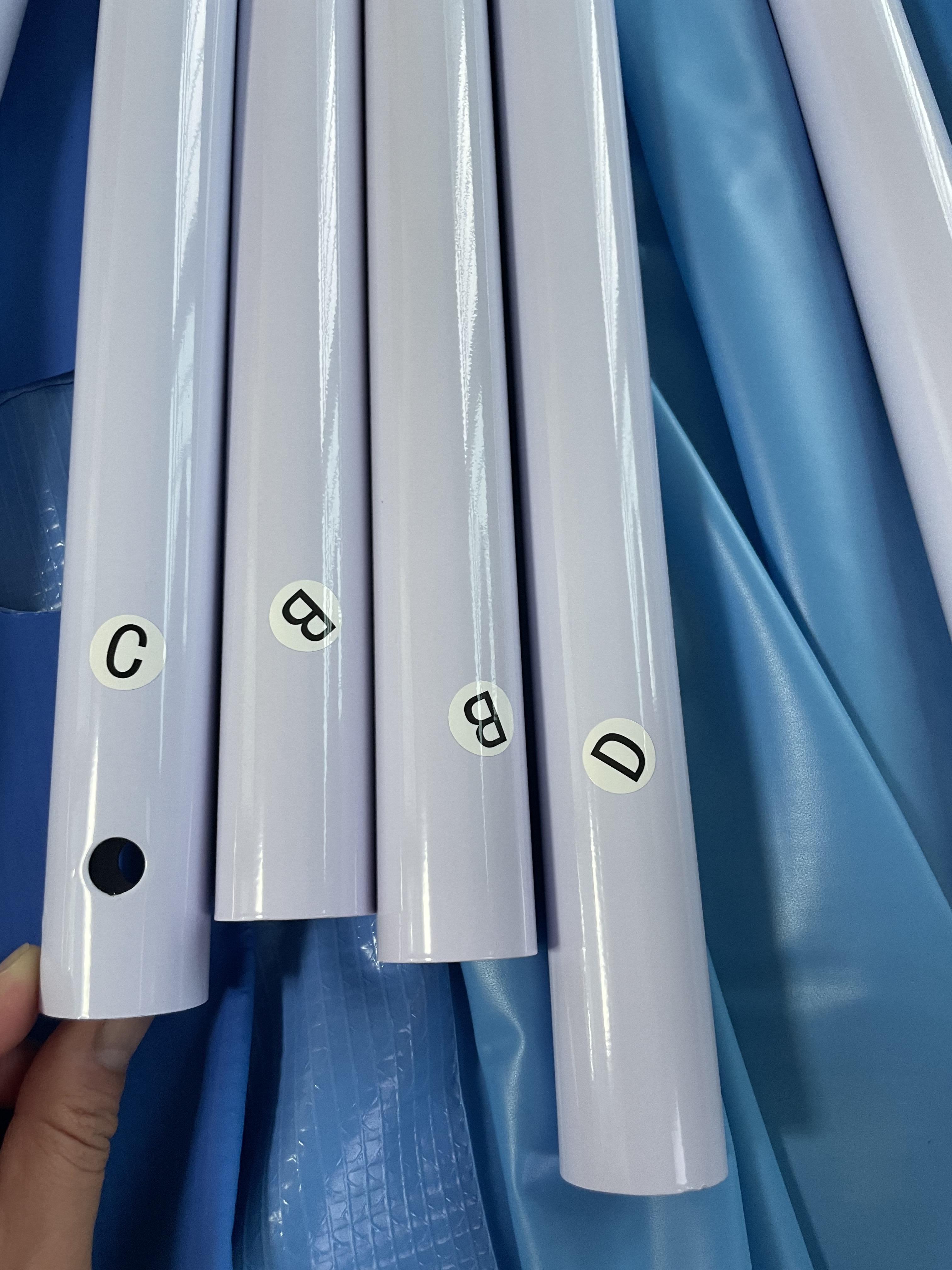 저희는 수영장 지지대 끝에 테이프로 감아서 두껍게 하고 구멍에 꽂아서 물을 뺏어요