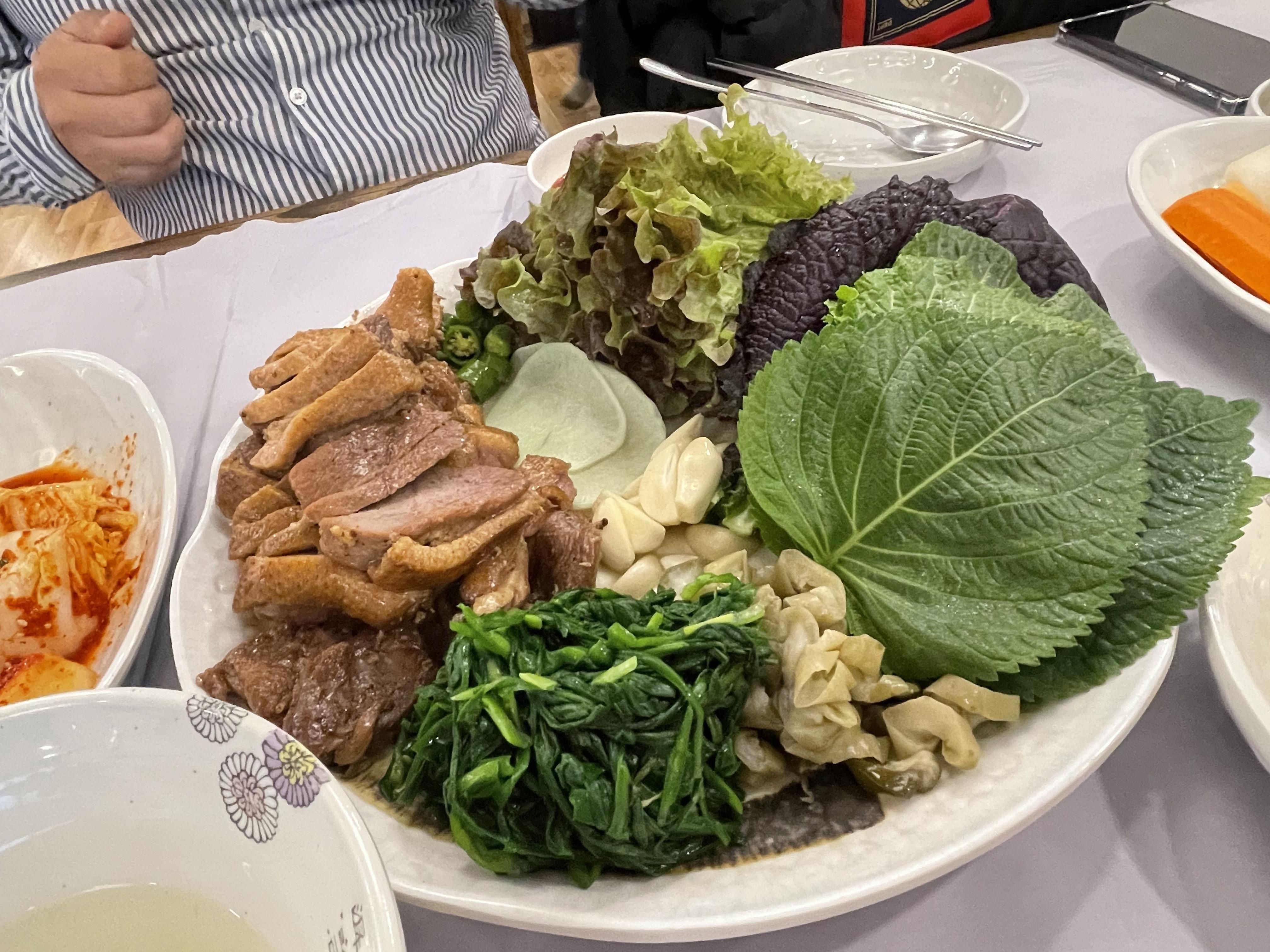 야채쌈이 골고루 부족하지 않게 나와요