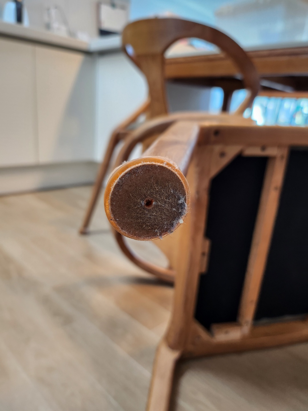가장 먼저 의자 다리에 붙은 먼지와 부직포를