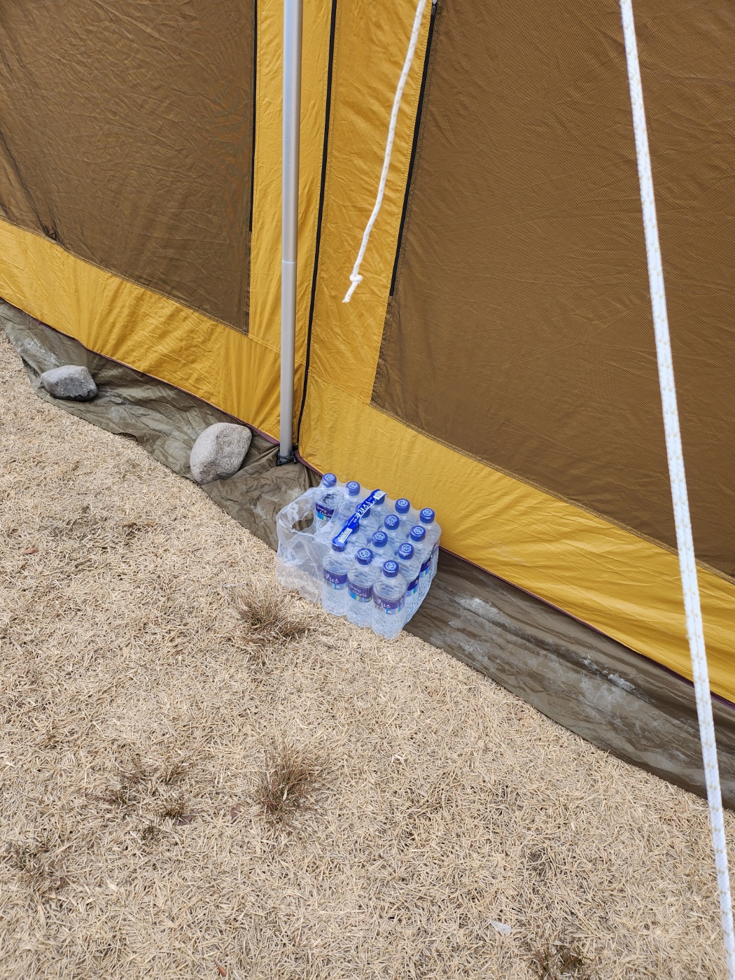 바람이 불고 산이라서 텐트를 쳤어요 ㅋㅋ