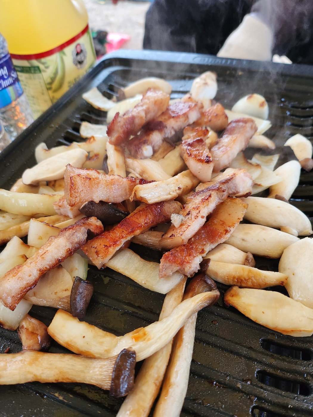 버섯이랑 고기 먹고