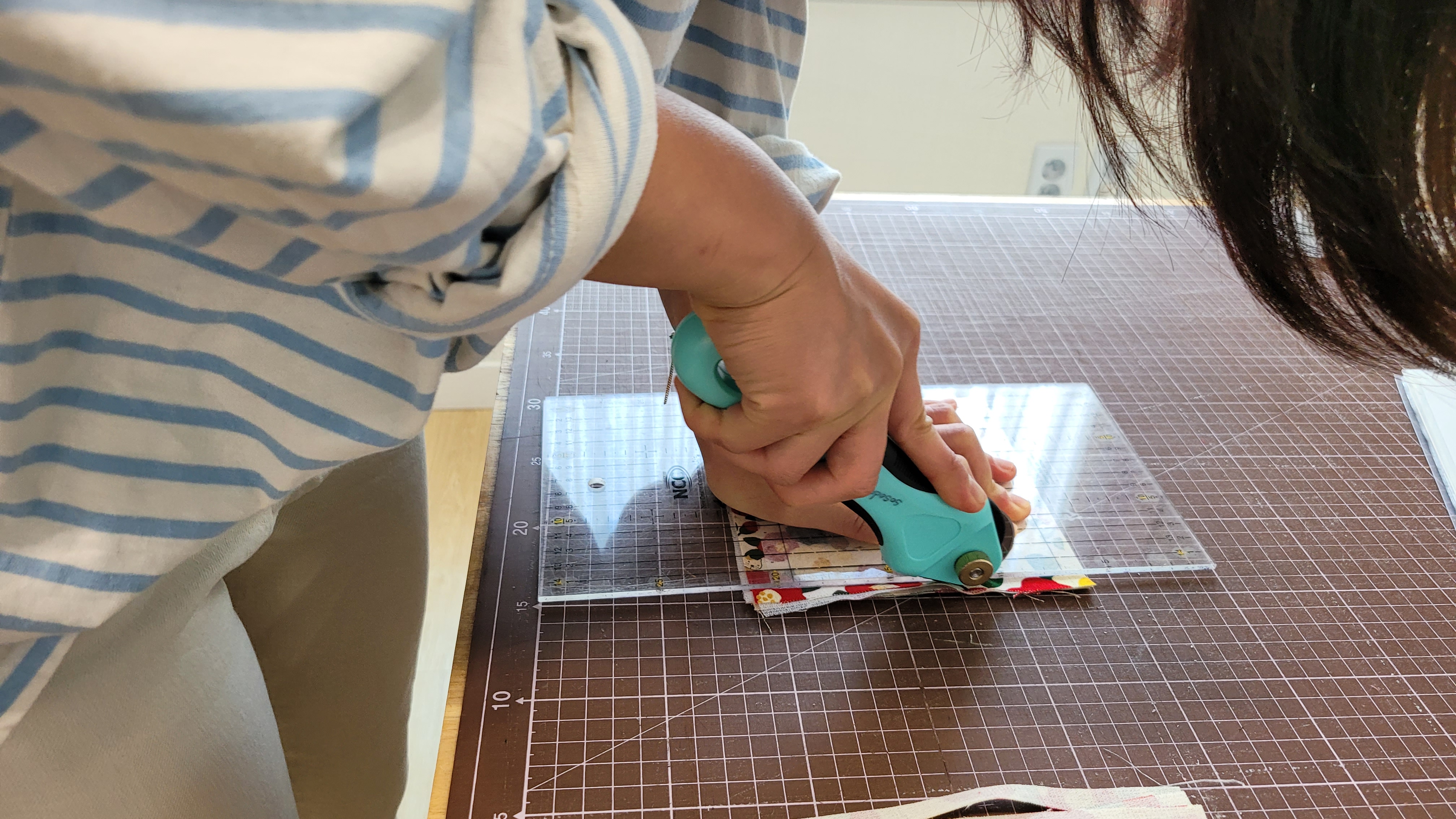 원단을 자른 후 다림질을 해줘요