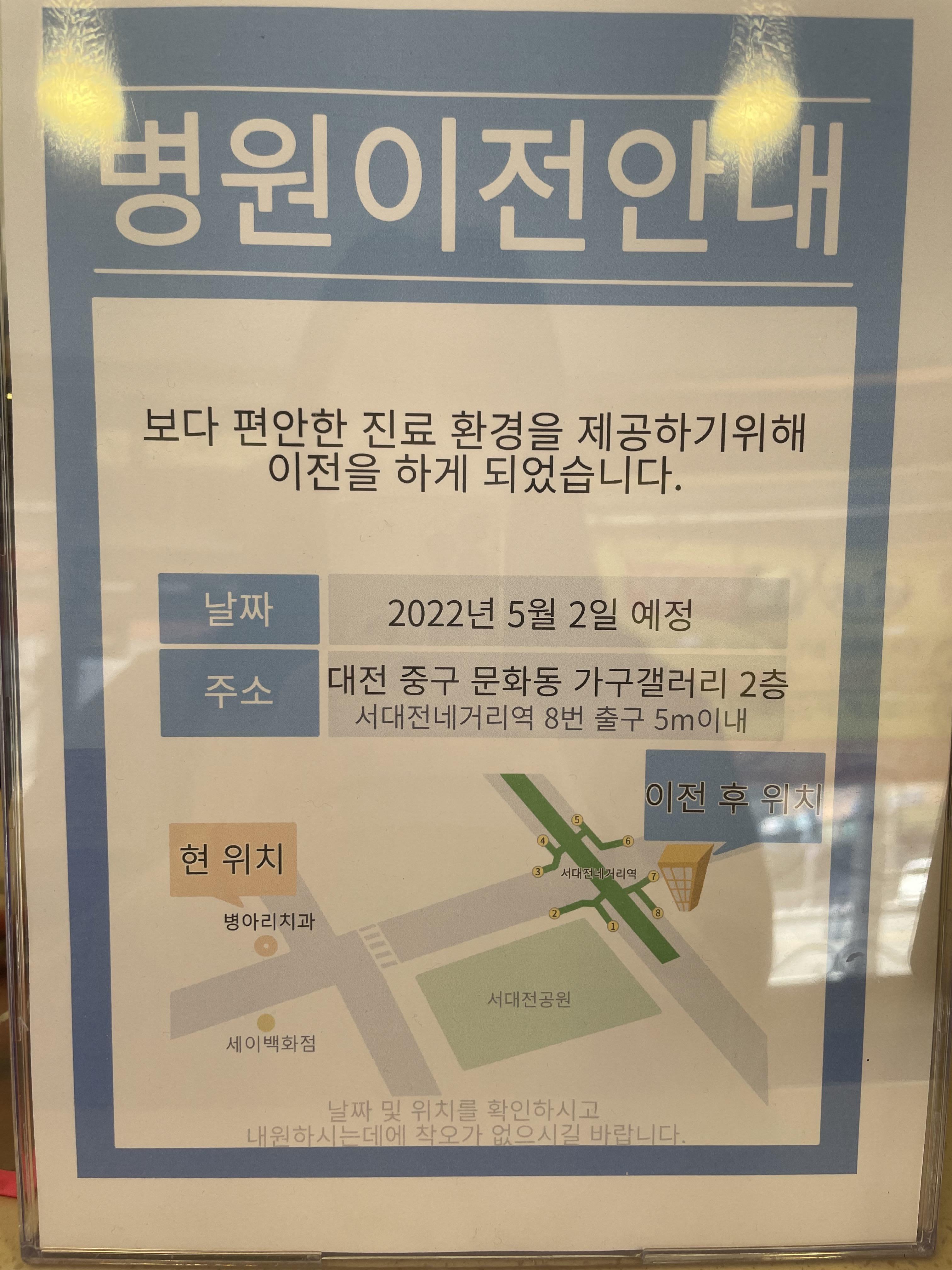 병원 이전 주소 : 대전 중구 문화동 가구갤러리 2층