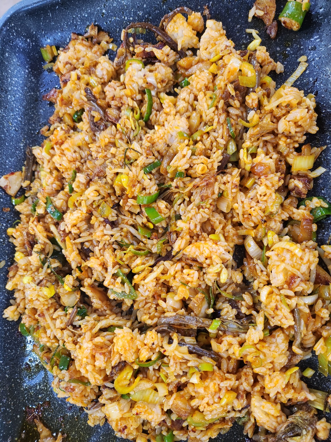 남편은 청국장이랑 볶음밥이랑 비벼먹었는데