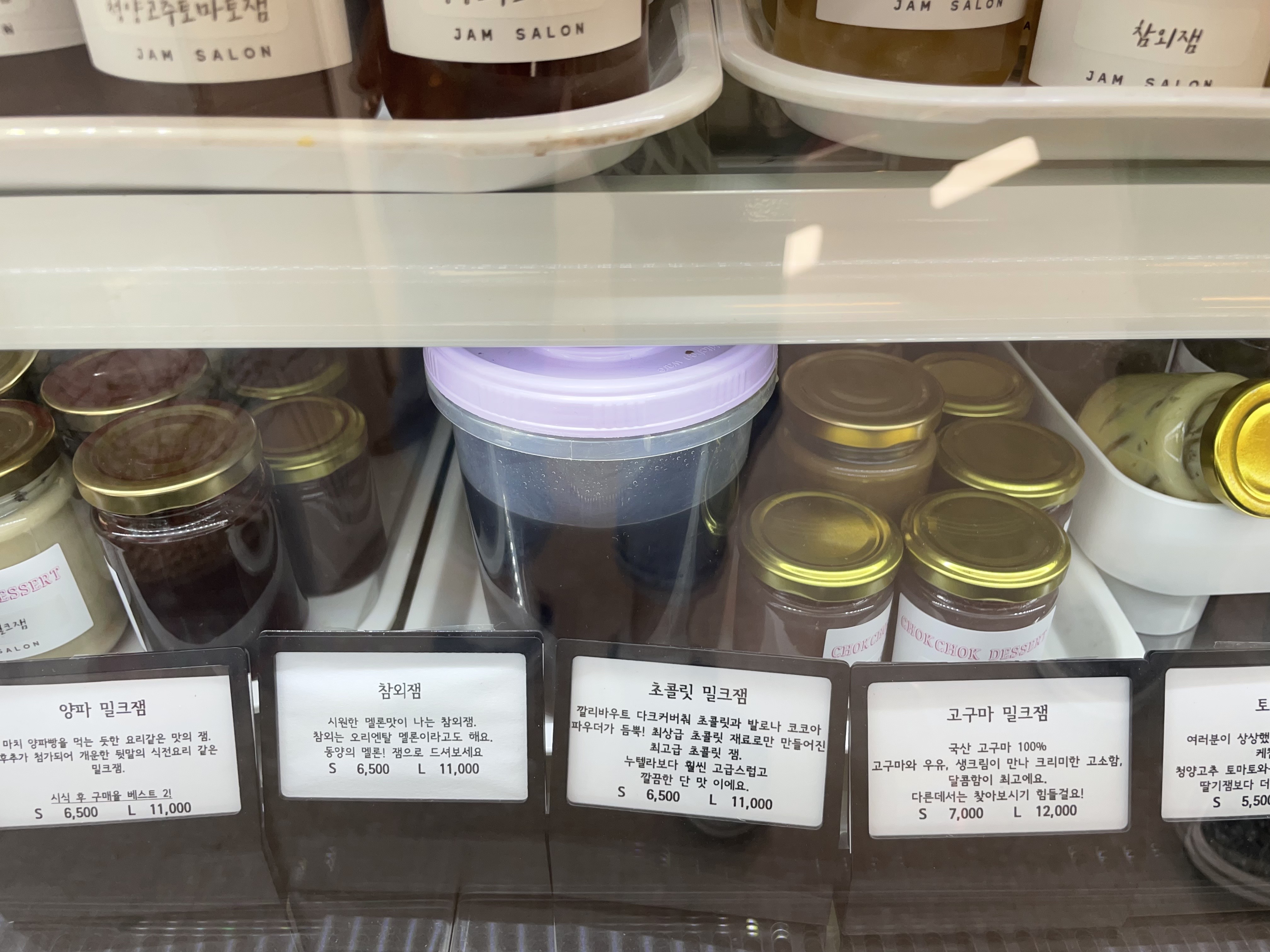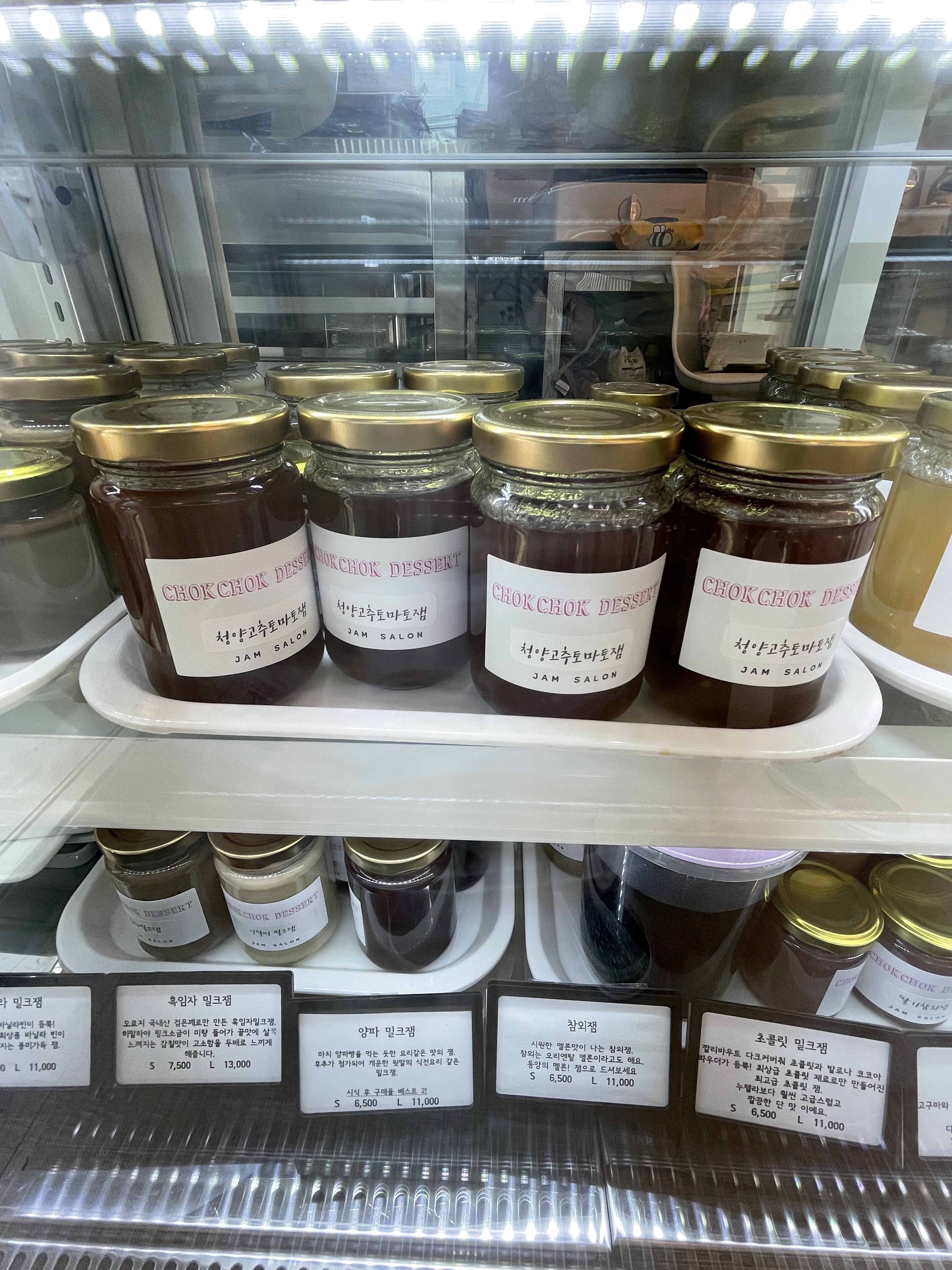 청양고추토마토잼, 단호박밀크잼, 딸기참외잼, 초콜릿밀크잼, 파인애플잼, 참외잼 등등
