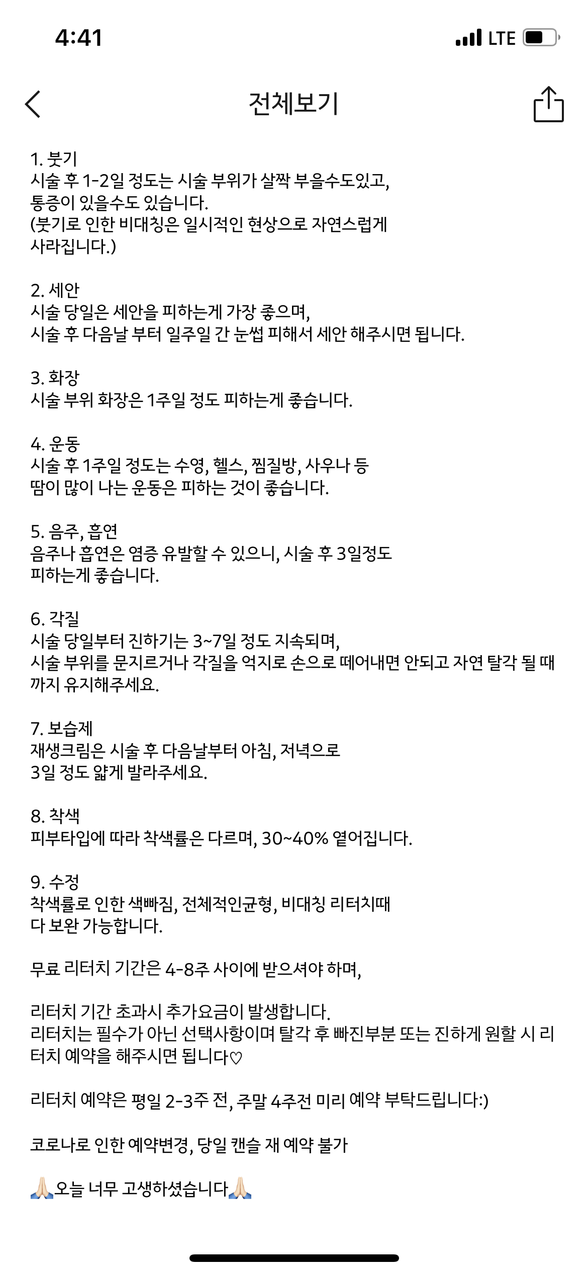 시술 후 주의사항도 꼼꼼히 챙겨주세요