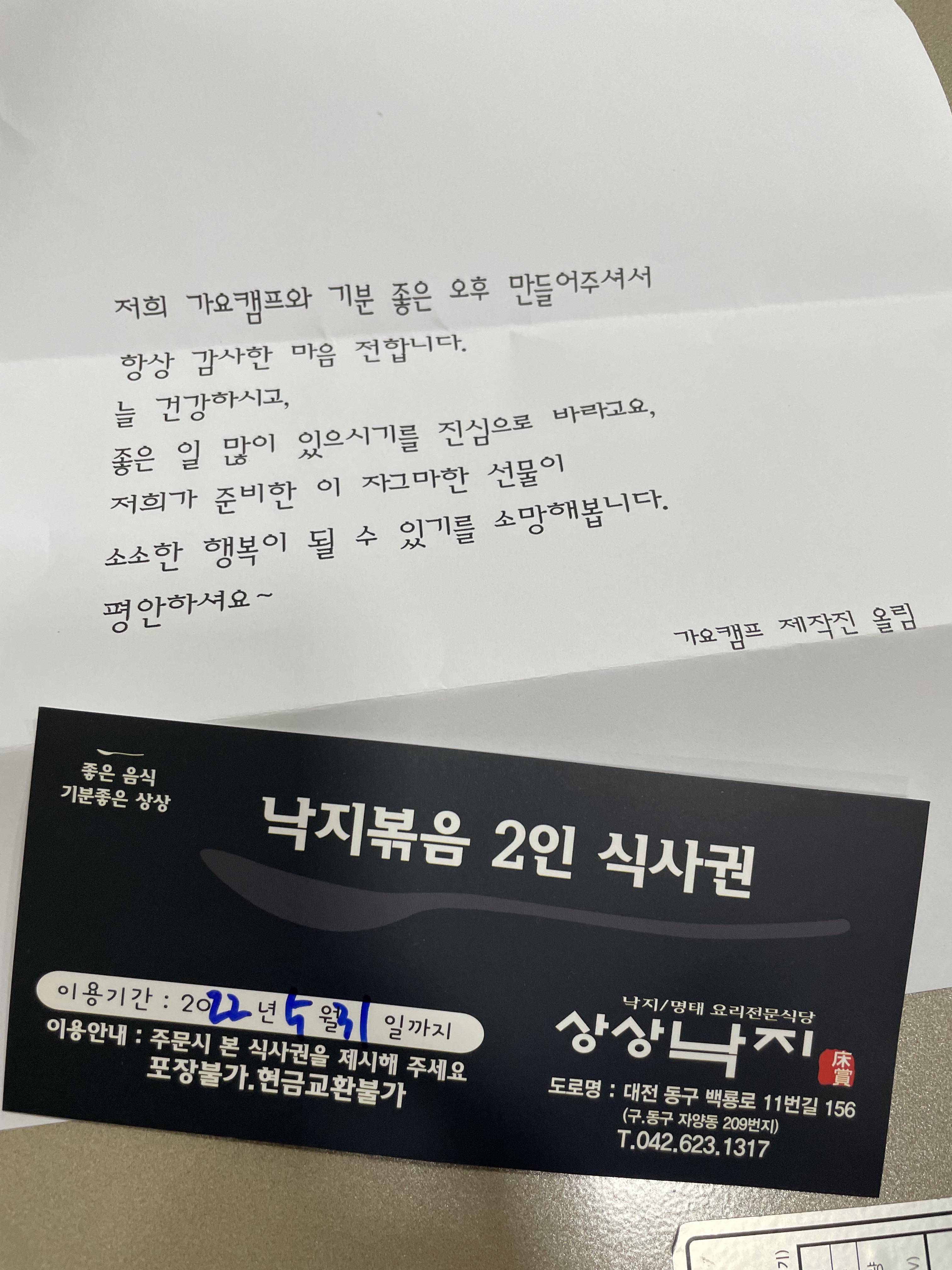 가끔 당첨돼서 식사권이 등기로 올 때가 있어요