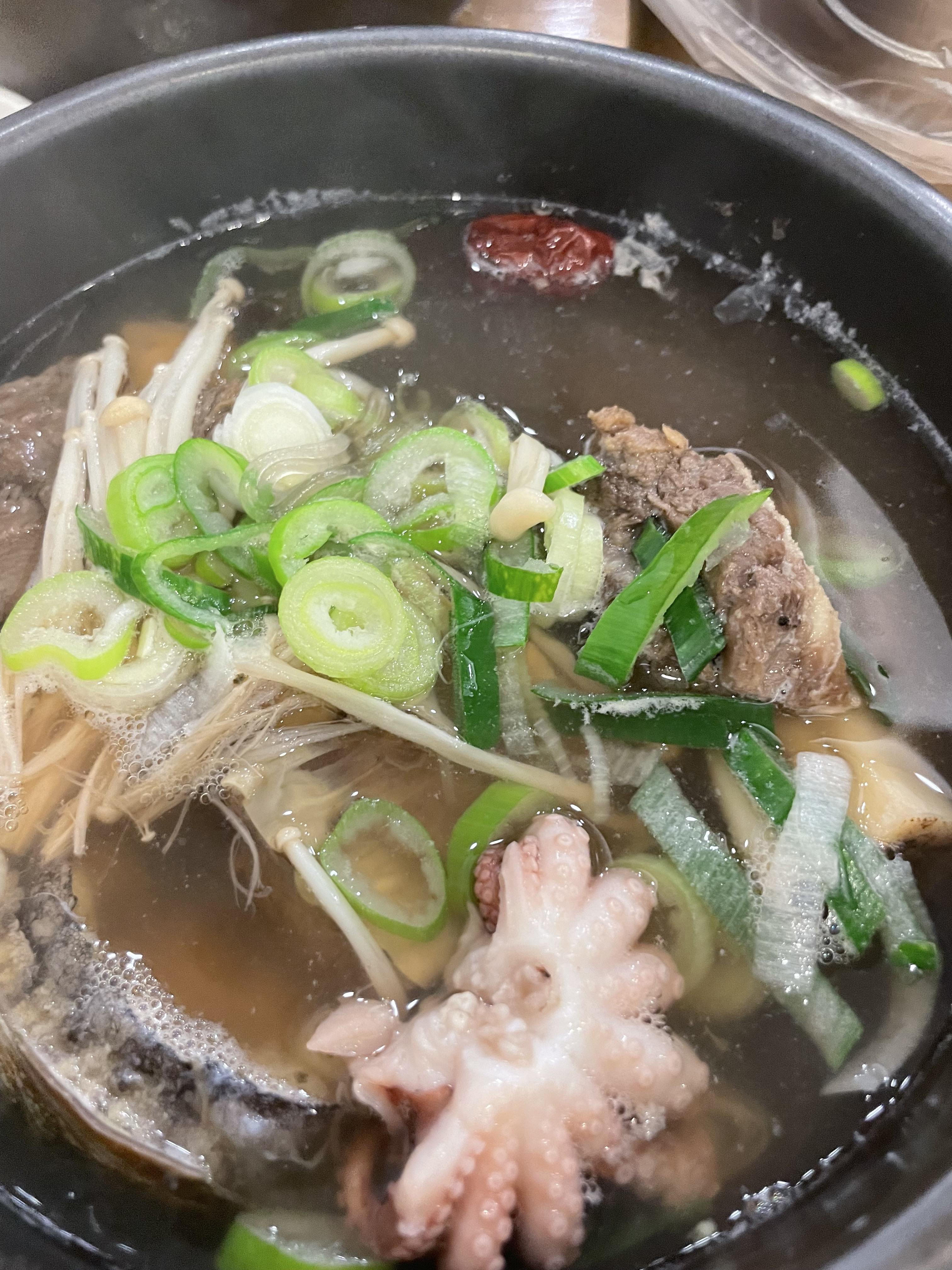 아이가 먹을 수 있게 낙지 갈비탕을 시켰어요