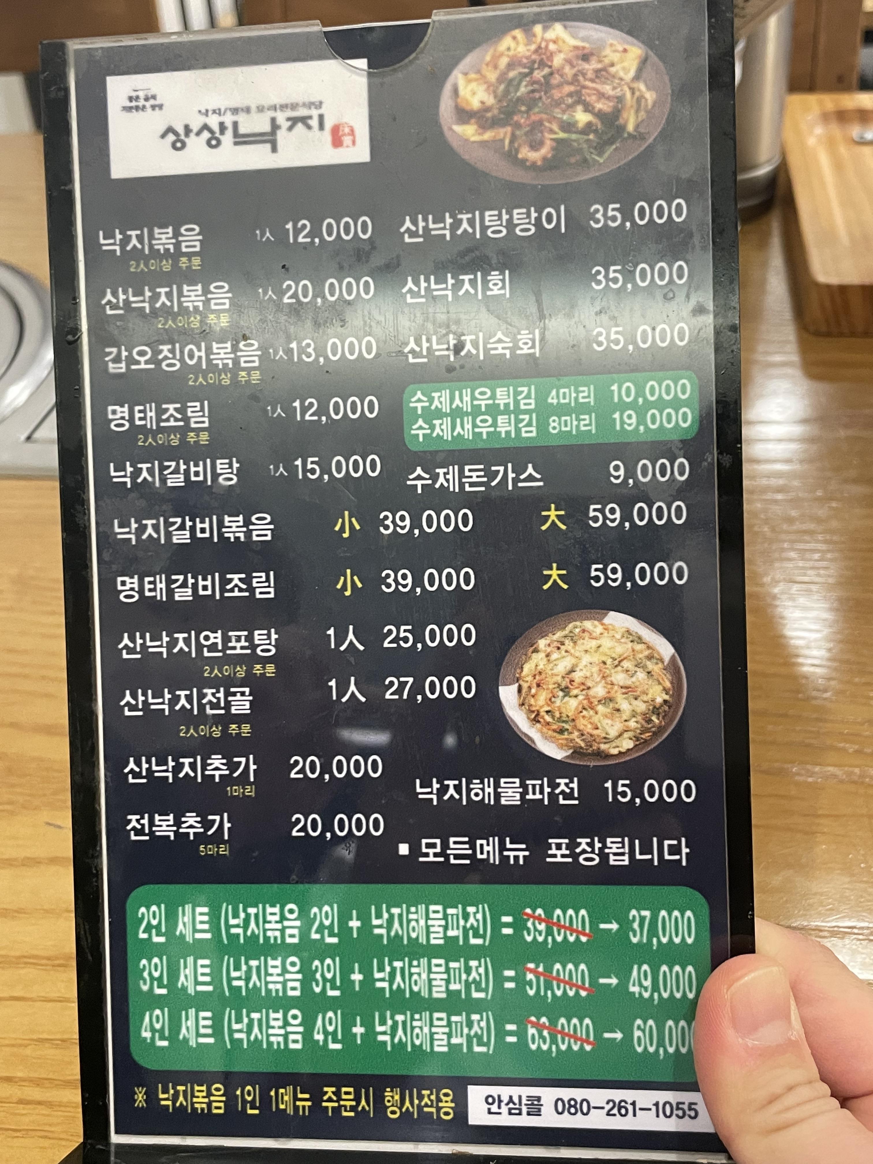 낙지볶음 2인과 낙지 갈비탕을 시켰어요