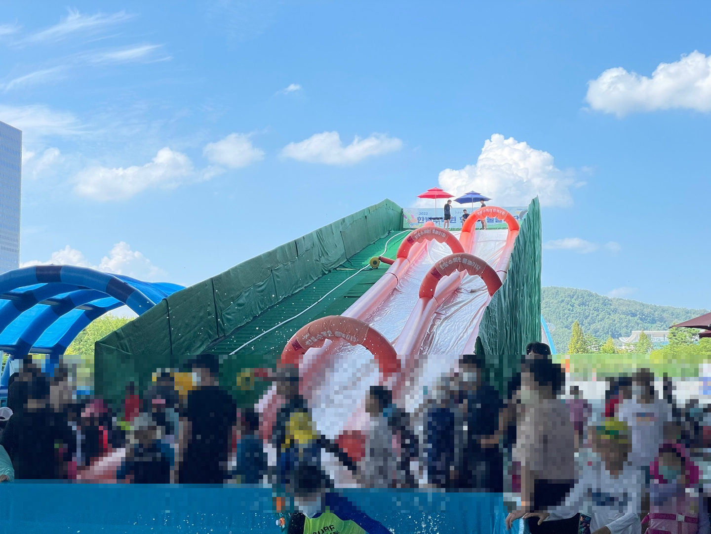 미끄럼틀 옆에는 수심 70cm 초등생만 이용 가능한 물놀이장이 있어요