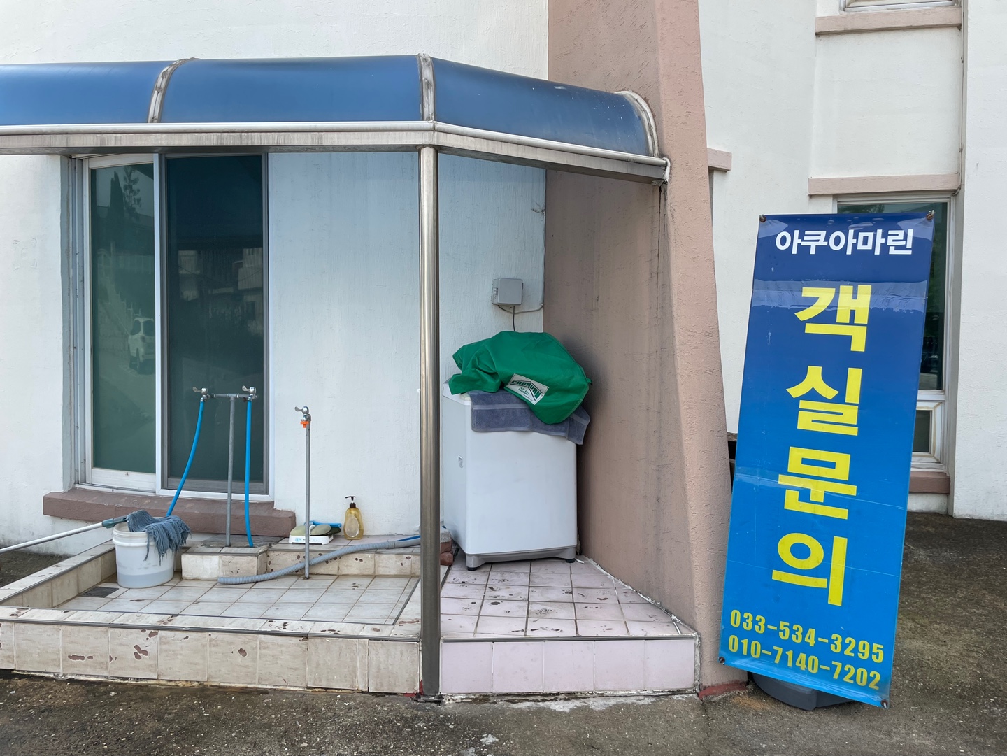 1층 출입구 옆에 세탁기와 수돗가가 있어요