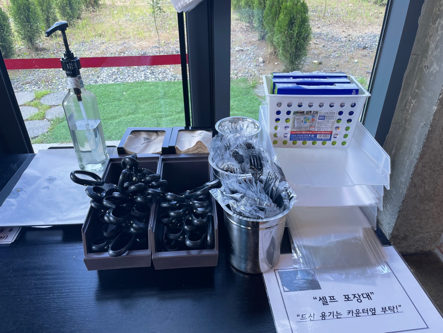 가위랑 포크, 냅킨이 따로 챙겨 가면 돼요 ^^