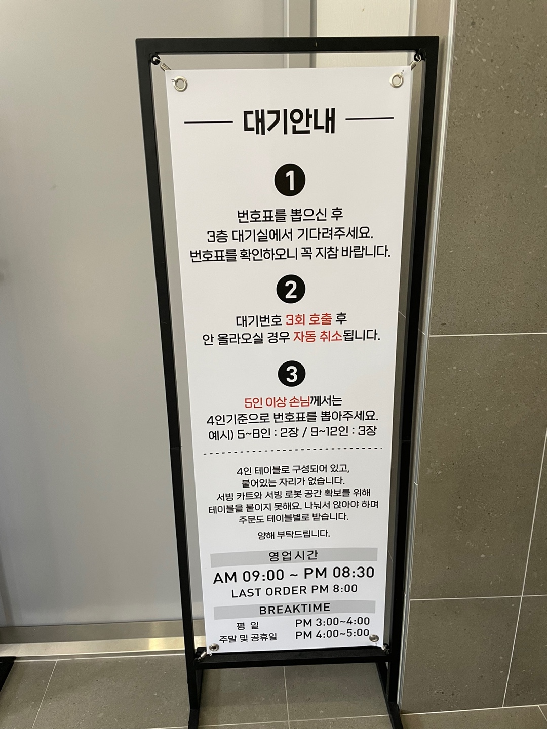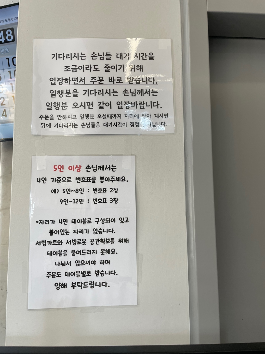 외부에 번호표 화면이 있어서