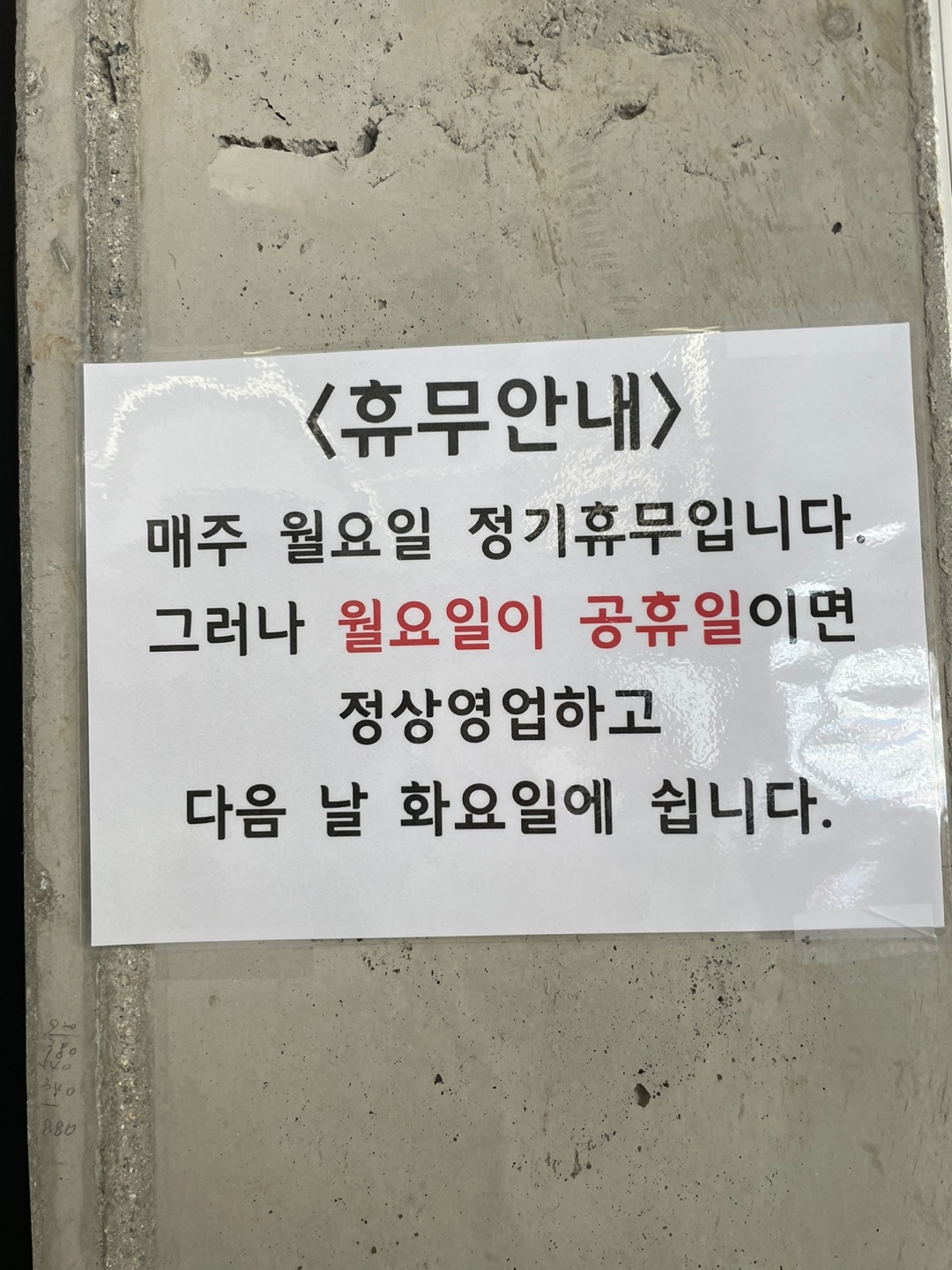 월요일 휴무 ( 월요일이 공휴일이면 화요일이 휴무 )
