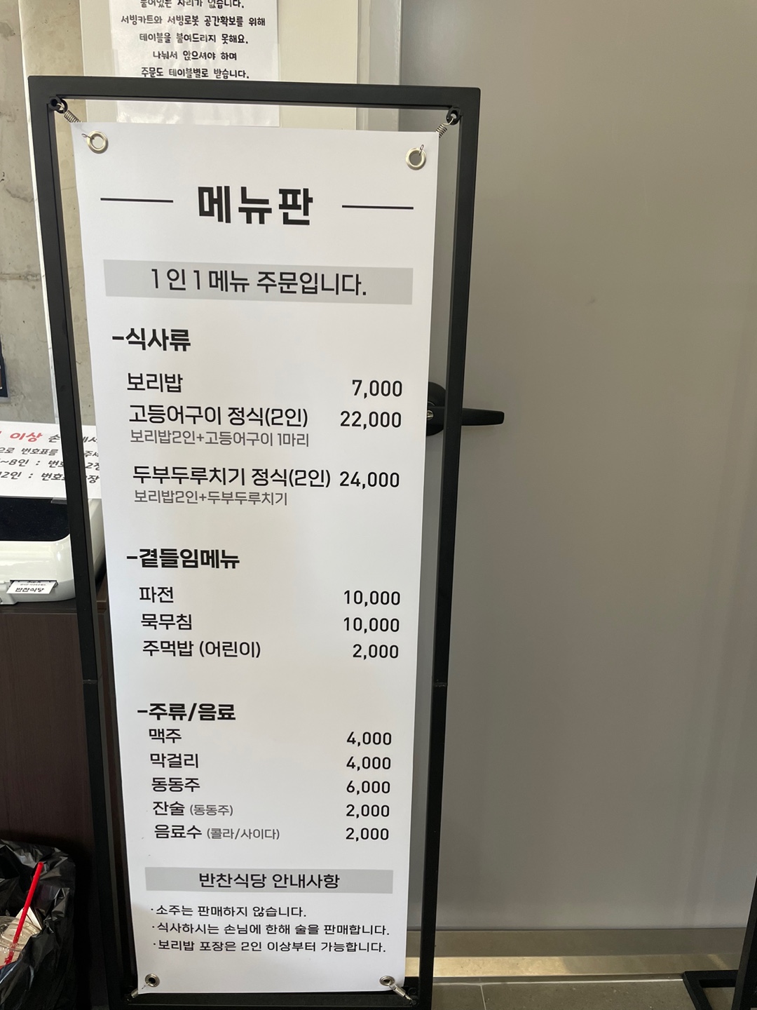 보리밥 3인과 두부두루치기, 고등어구이를 먹고 싶었는데