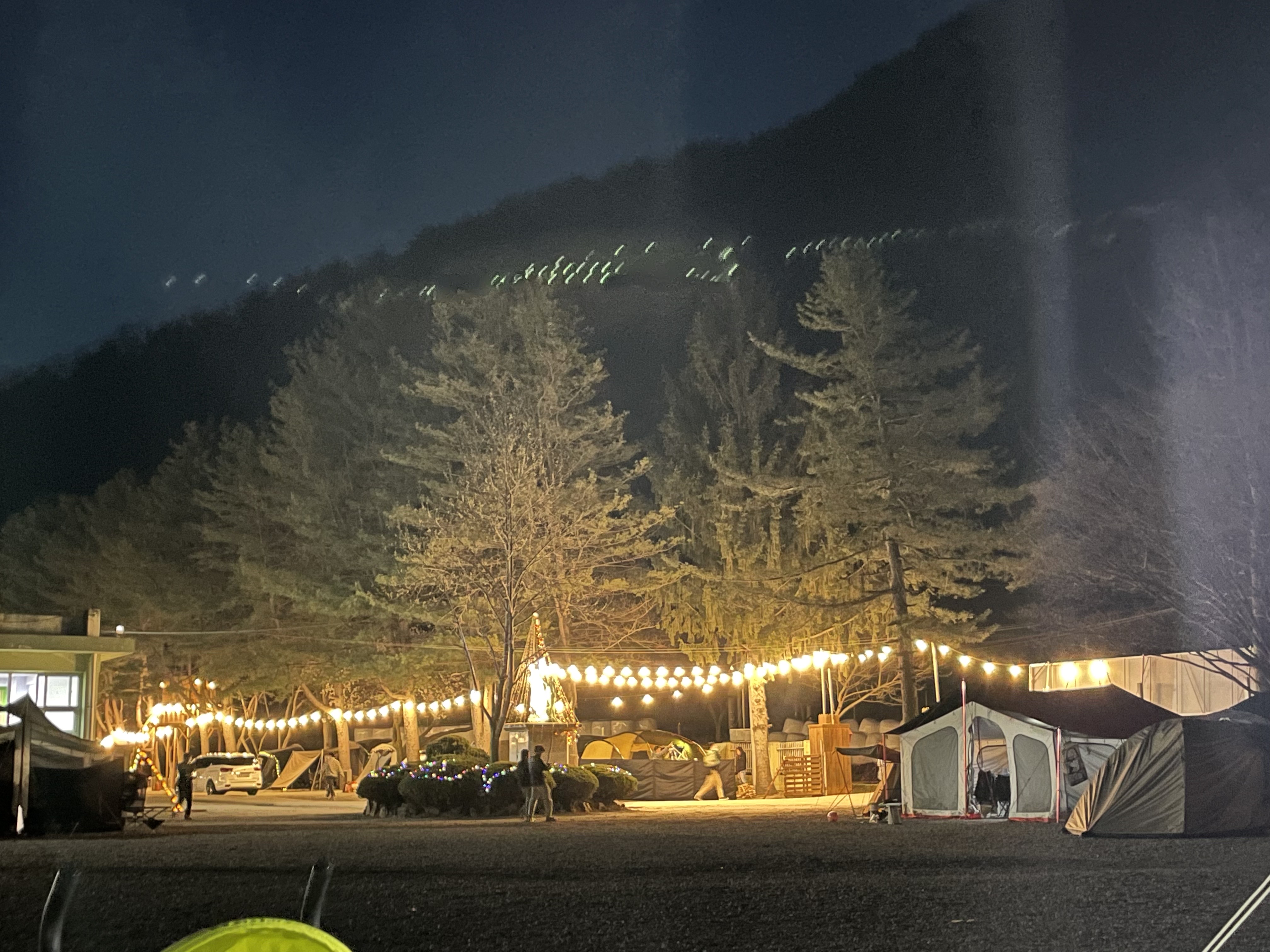 캠핑장 자체 조명이 밝은데 갬성이에요 ^^