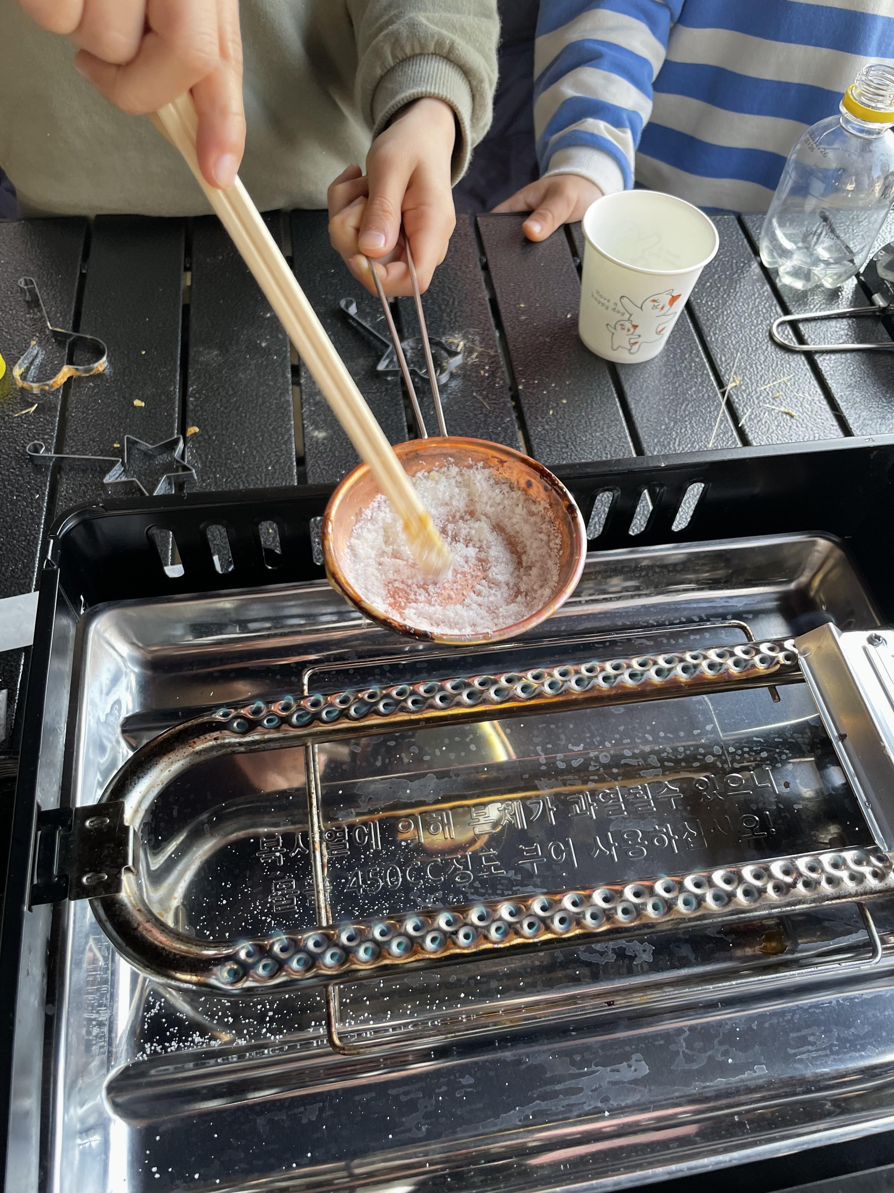 간식으로 달고나와 어묵, 파닭꼬치를 먹었어요 !