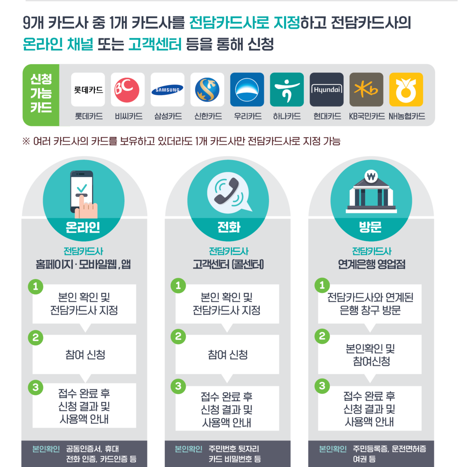 신청인이 지정한 전담 카드사의 카드로만 사용 가능해요