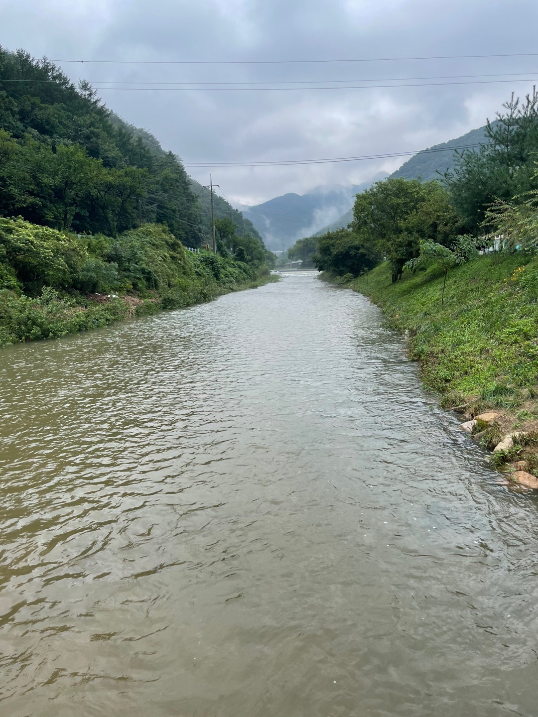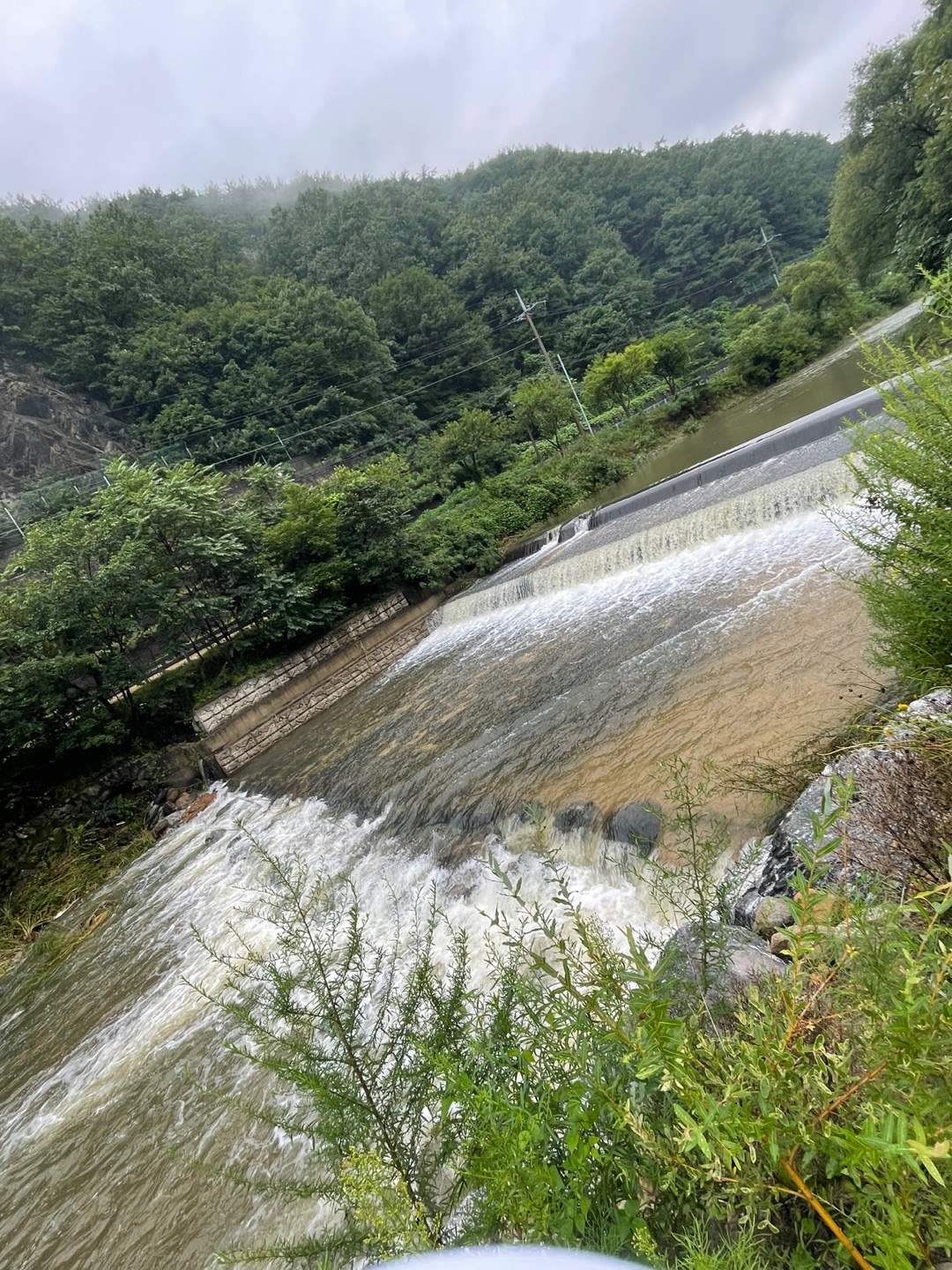 밤에 비가 많이 와서 계곡 입구를 막아놨는데