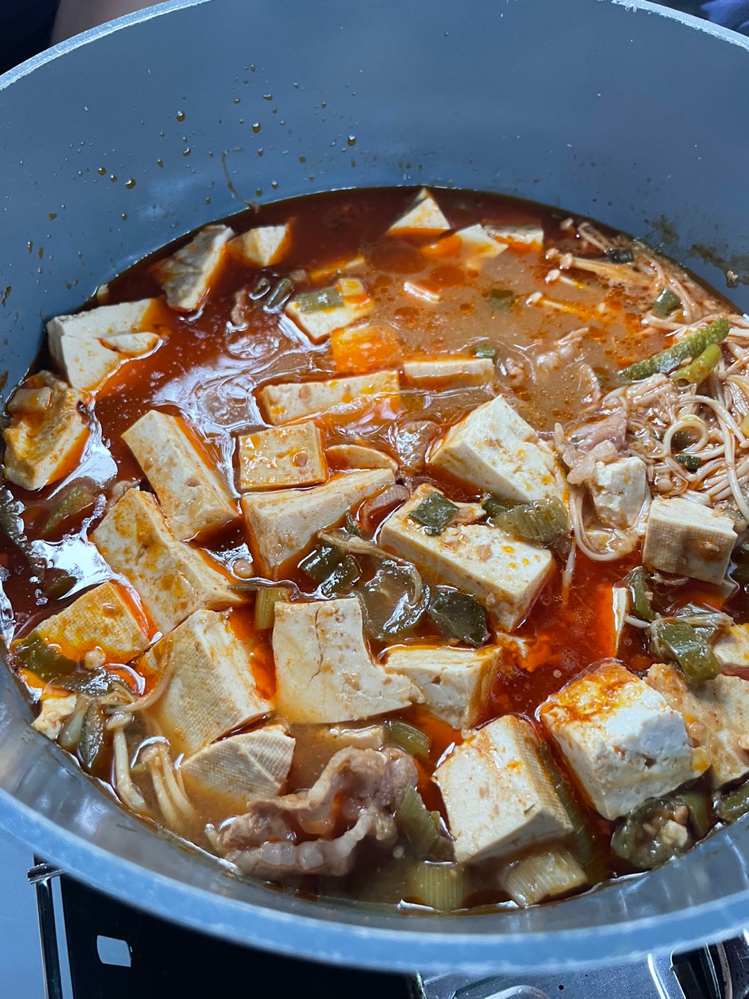 두부, 차돌박이, 팽이버섯, 파, 양파 등