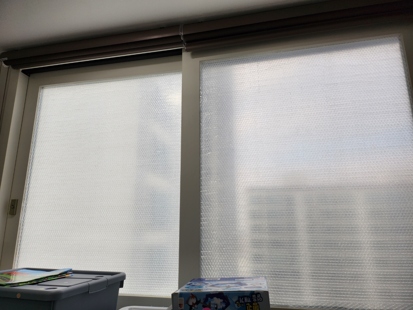 뽁뽁이를 붙이니 사생활보호 효과까지 가능해서