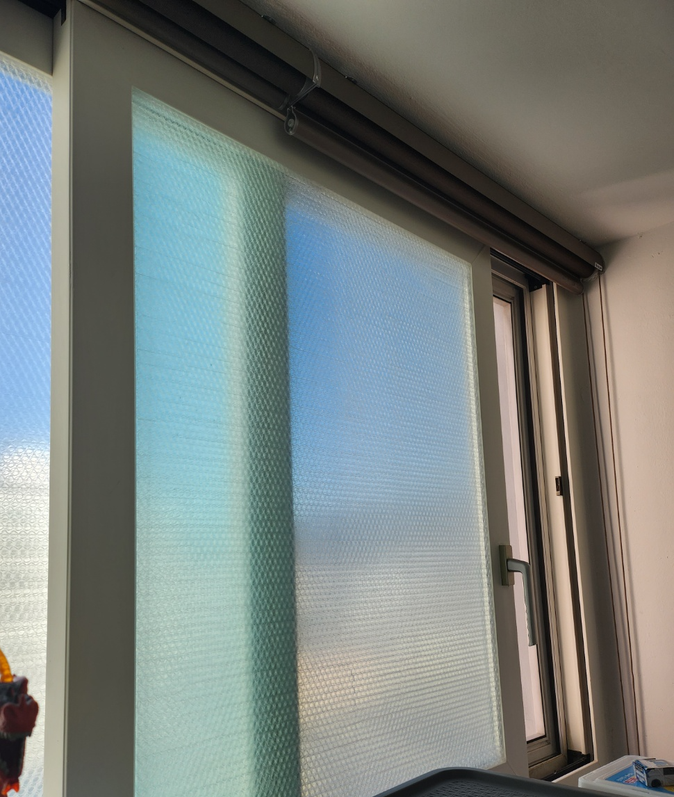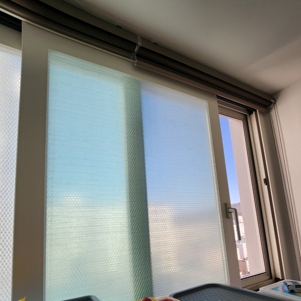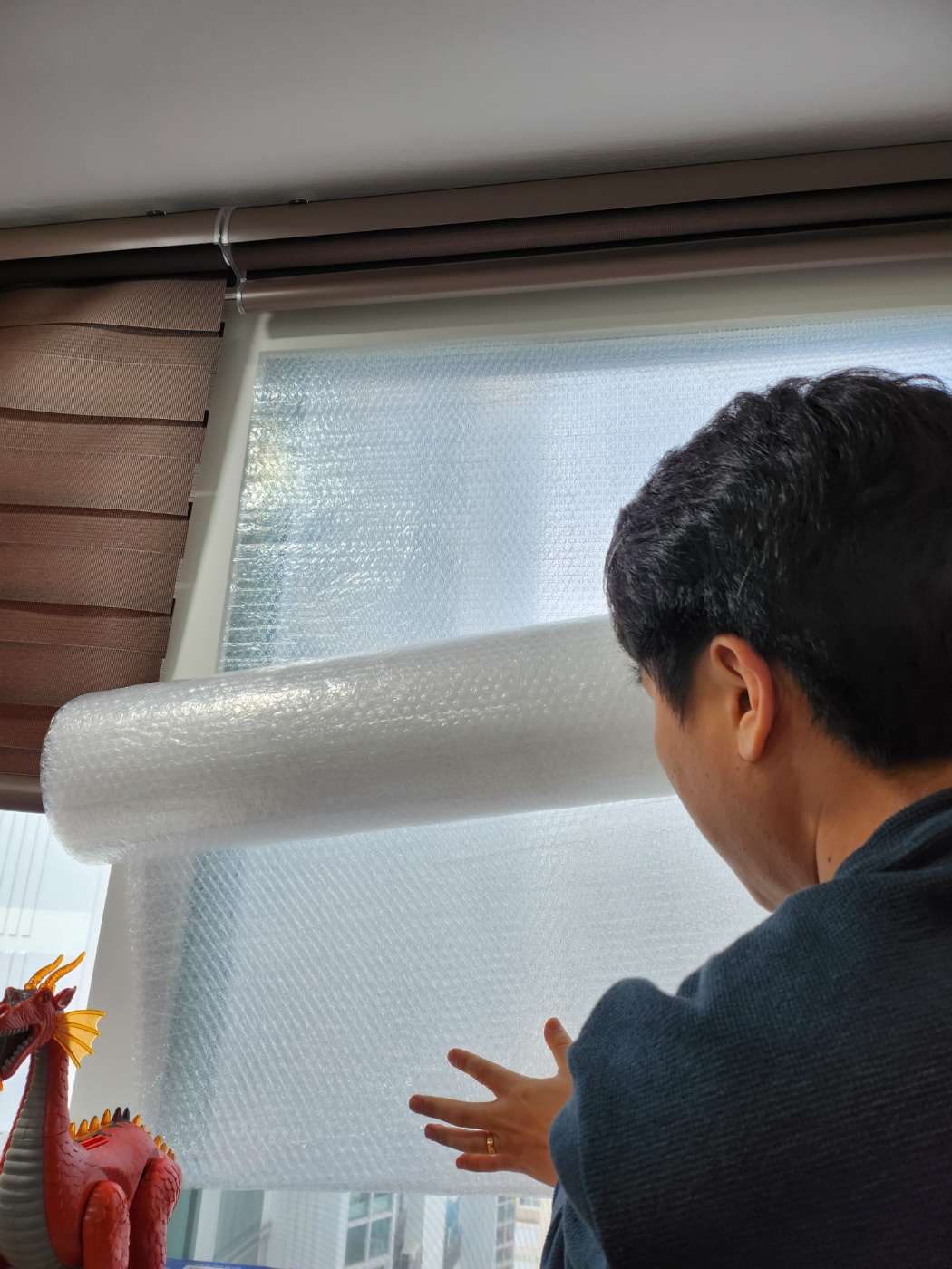 2. 창문에 6중 뽁뽁이로 단열층 만들기