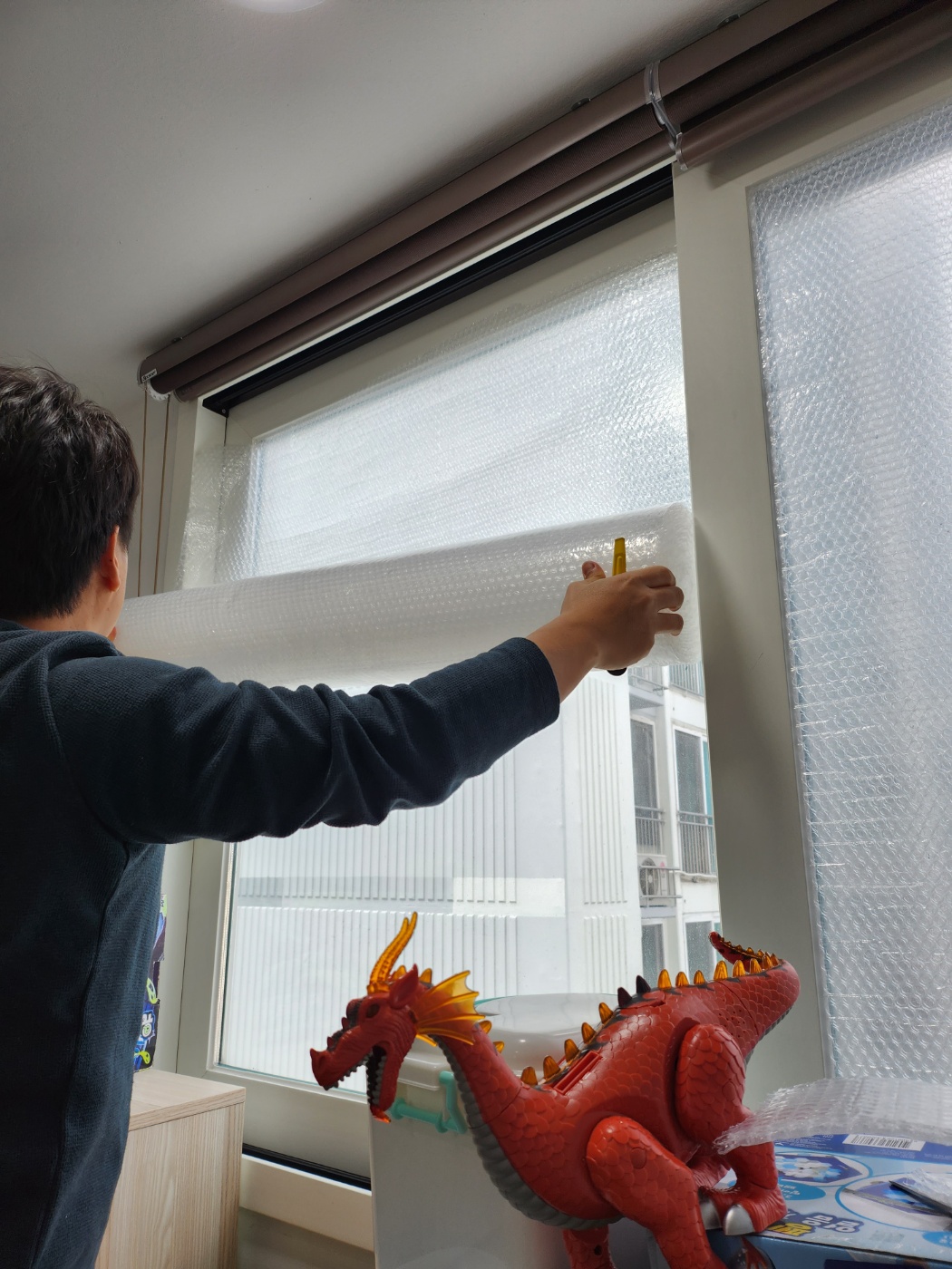 창문에 뽁뽁이를 붙이기 전에는