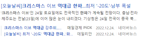 크리스마스 때 역대급 한파였는데