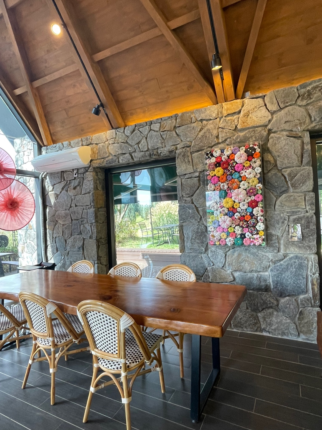 야외에 테이블이 많아서 여유 있게 자연을 즐기면서