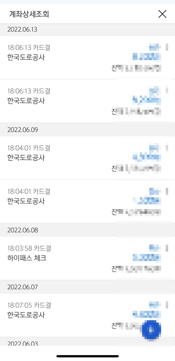 하이패스 이용 내역 매입 다음 영업일에 결제계좌에서 인출해요