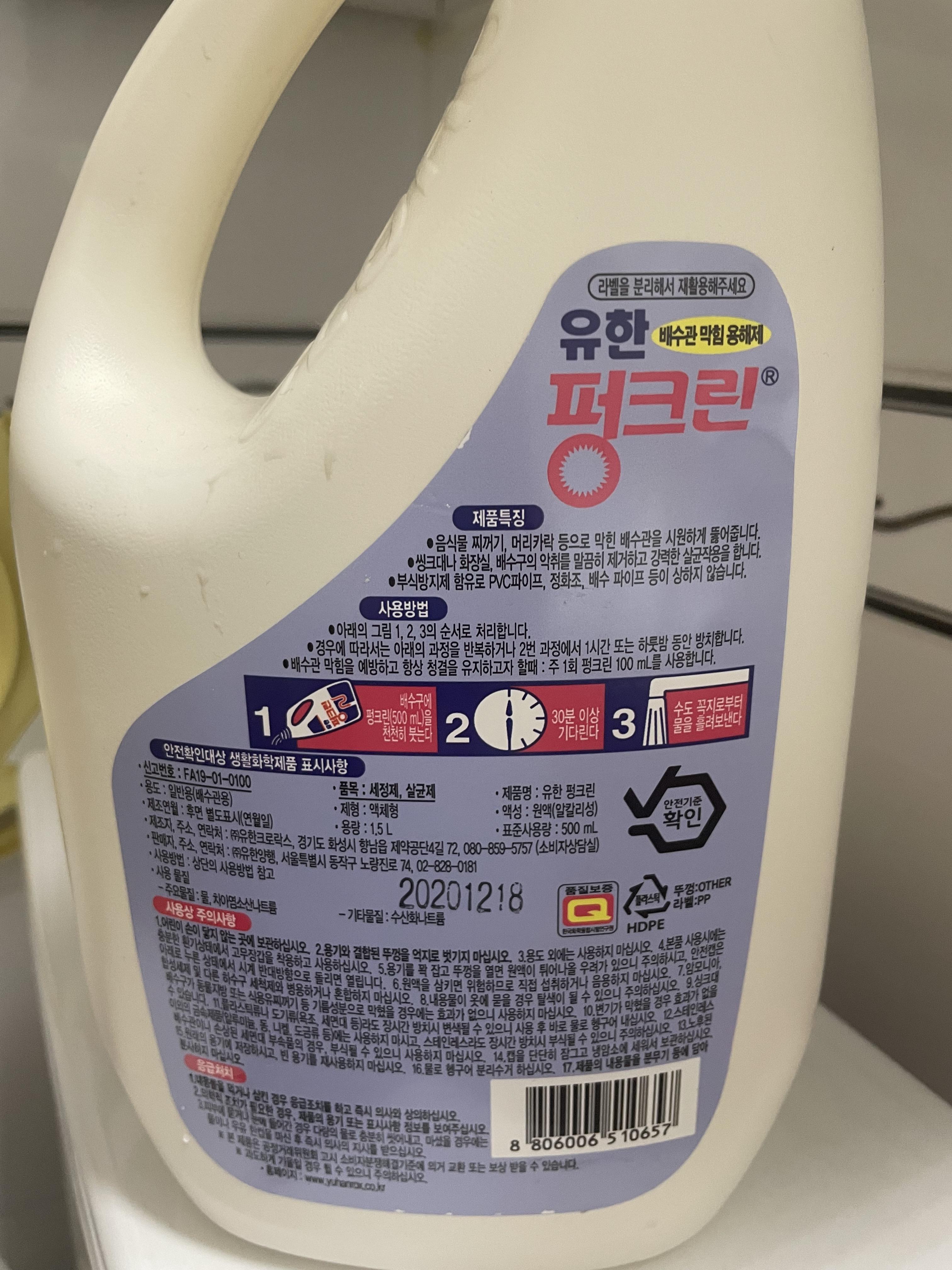 1. 배수구에 펑크린 500ml을 천천히 붓는다