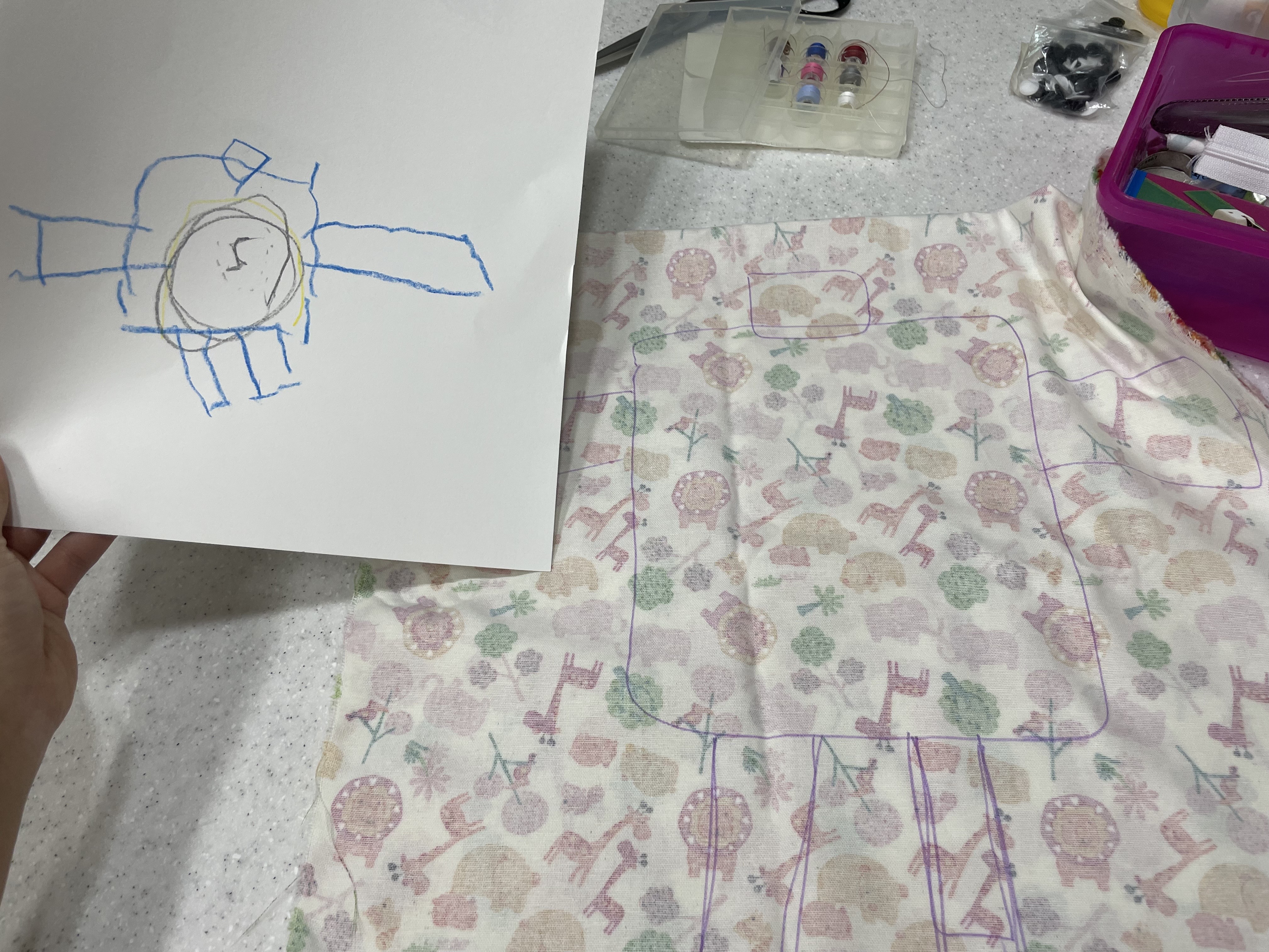 아들이 그린 그림을 원단에 그리고... 최대한 비슷하게....