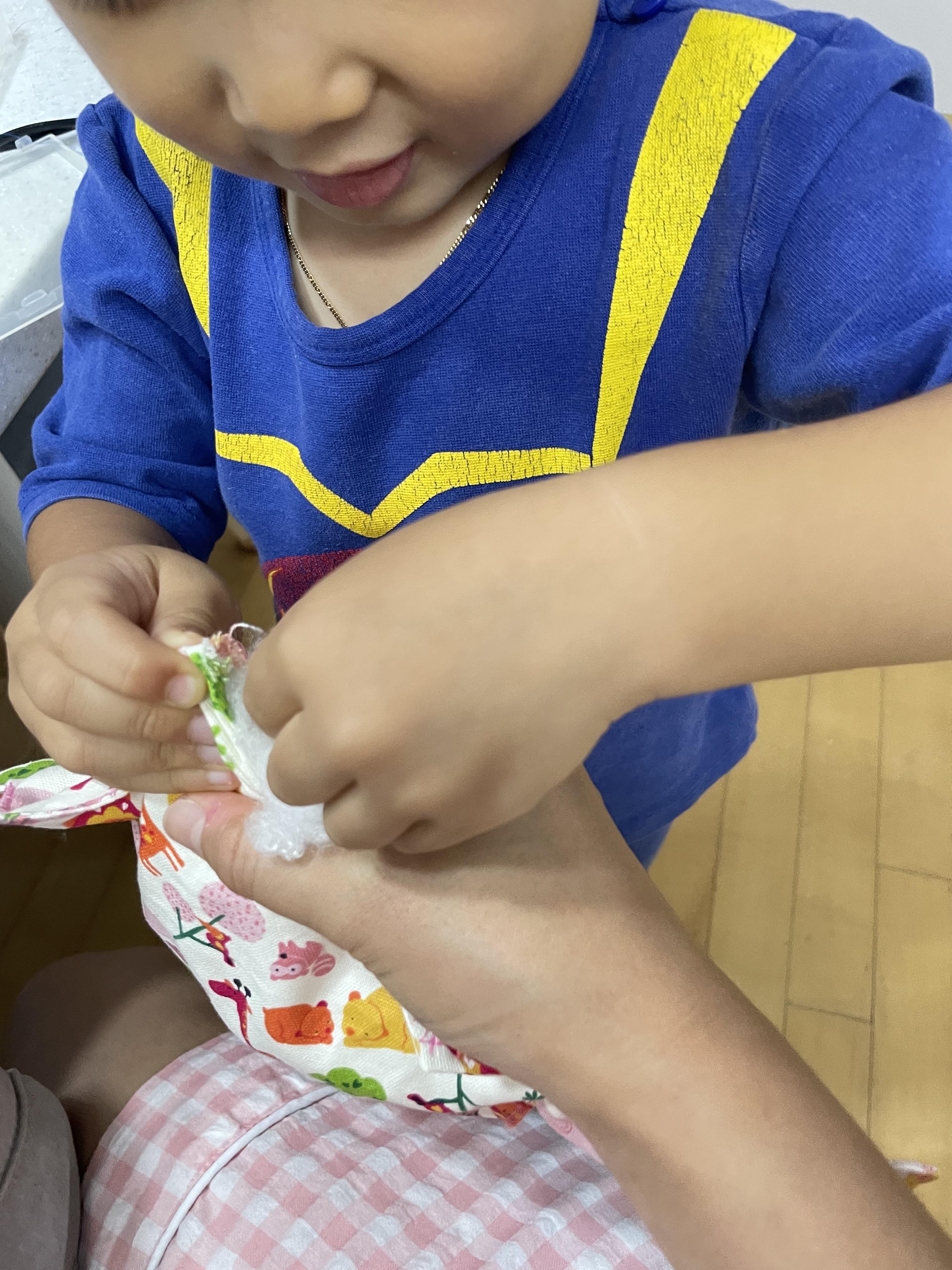 솜을 채우니 점점 인형의 모습으로 변하고 있어요
