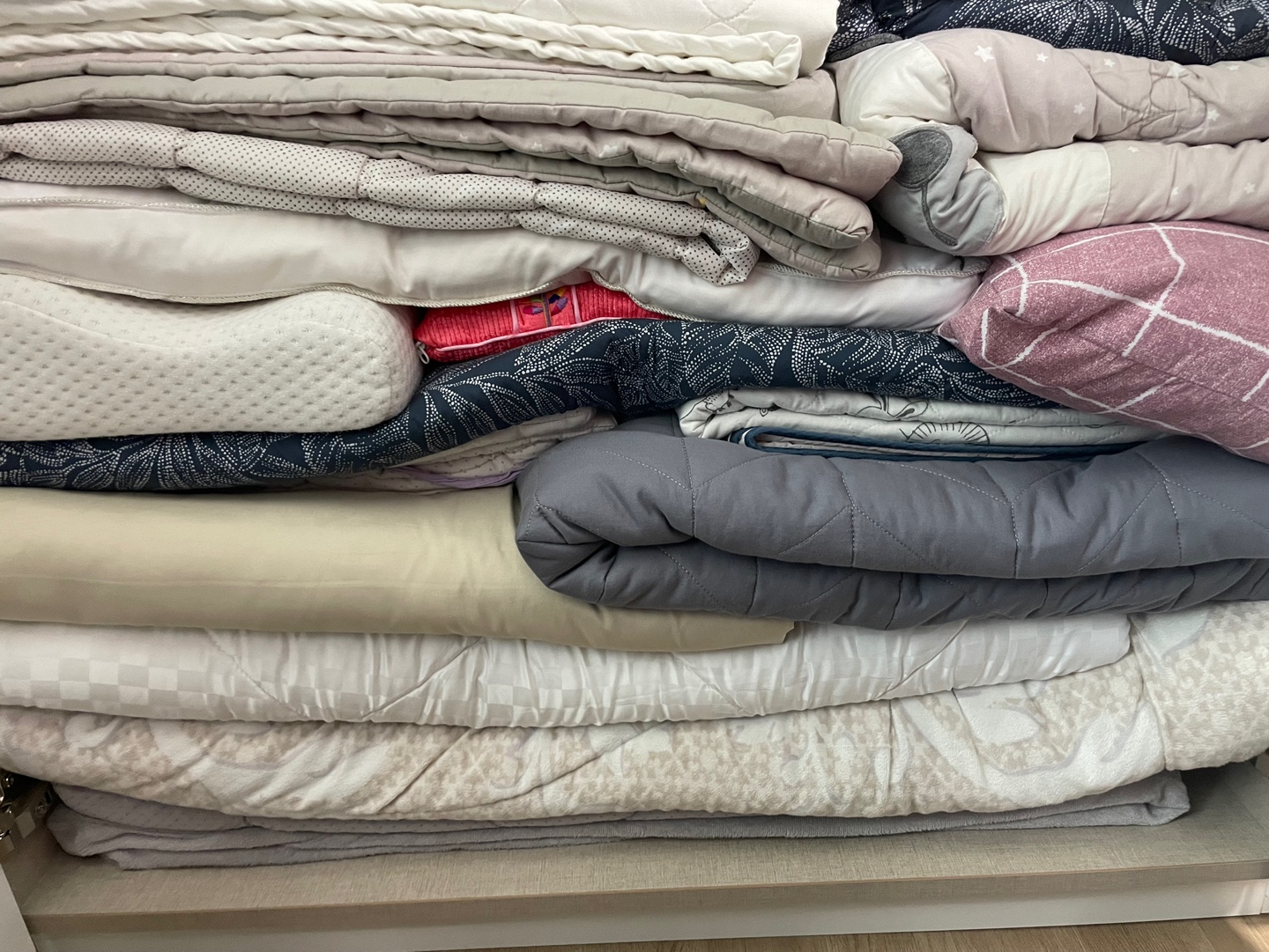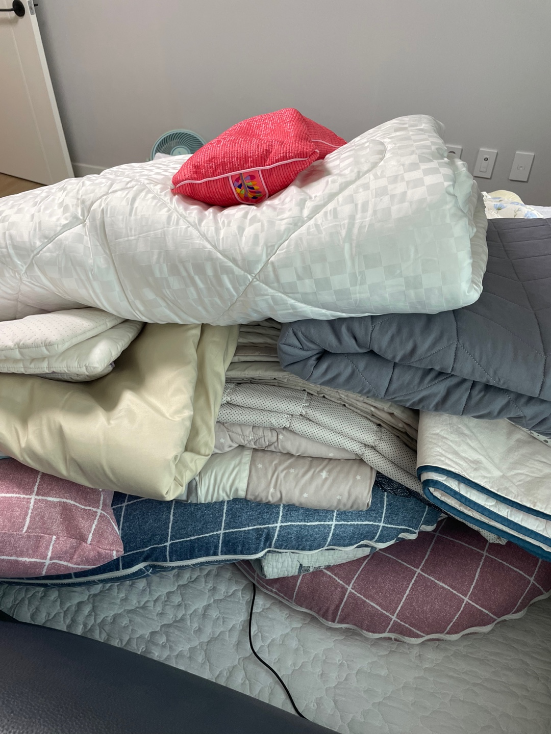 제 나름 차곡차곡 이불을 쌓아서 보관했어요