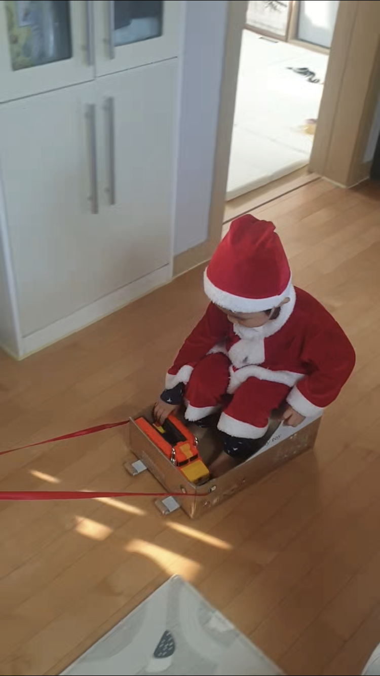 끈을 연결하고 끌어주니 산타는 선물을 나눠주고