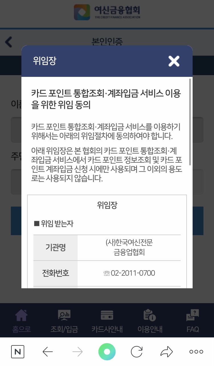 개인정보에 대한 동의를 하고 본인인증 그리고 위임장 동의