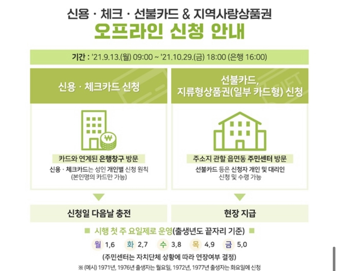 9월 13일 부터 국민지원금 오프라인 신청이 시작되었어요
