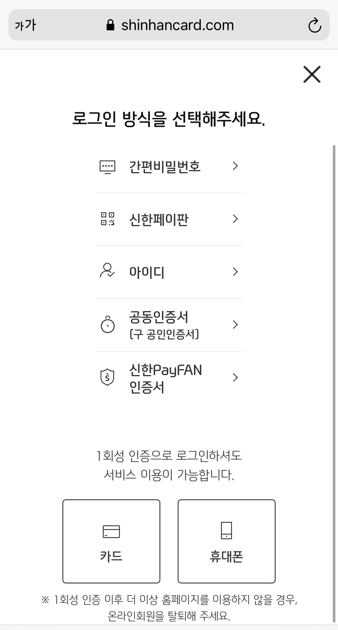 전 1회성 인증으로 휴대폰 인증을 선택했어요
