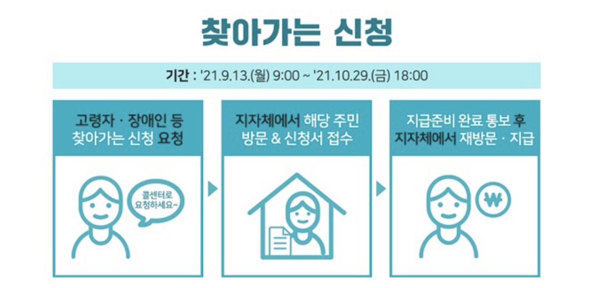 고령자 등 거동이 불편하신 분들을 대상으로 자치단체에서 직접 방문하여 지원금 신청을 도와드리는