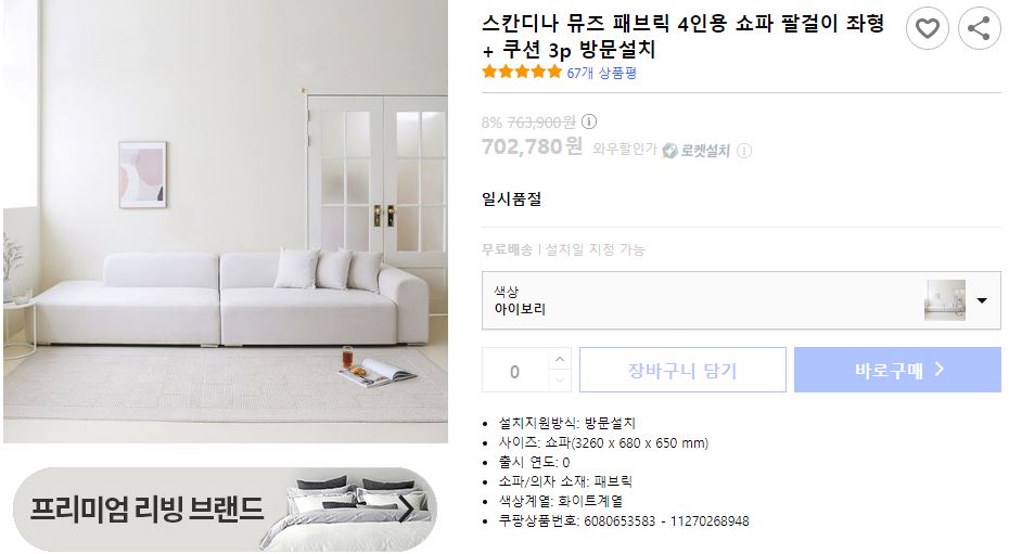 당첨됐던 제품 중에 제일 고가인 스칸디나 뮤즈 패브릭 소파예요 ❤