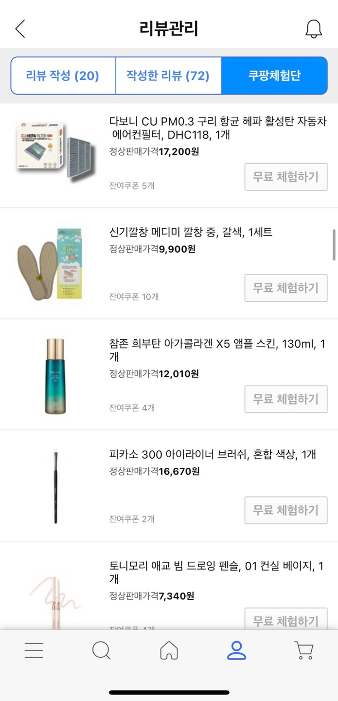 쿠팡체험단 무료 체험 제품