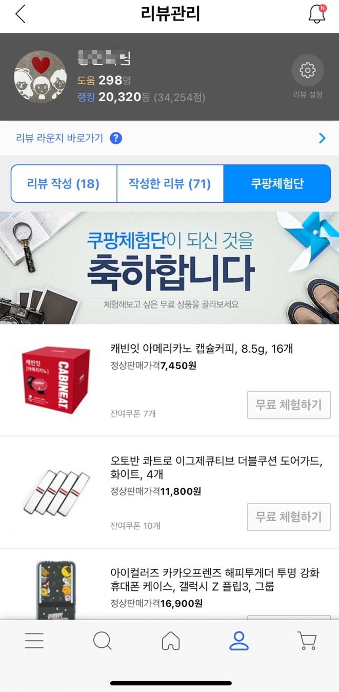 쿠팡체험단 탭이 생겼어요 !!!!!! ㅋㅋㅋㅋ