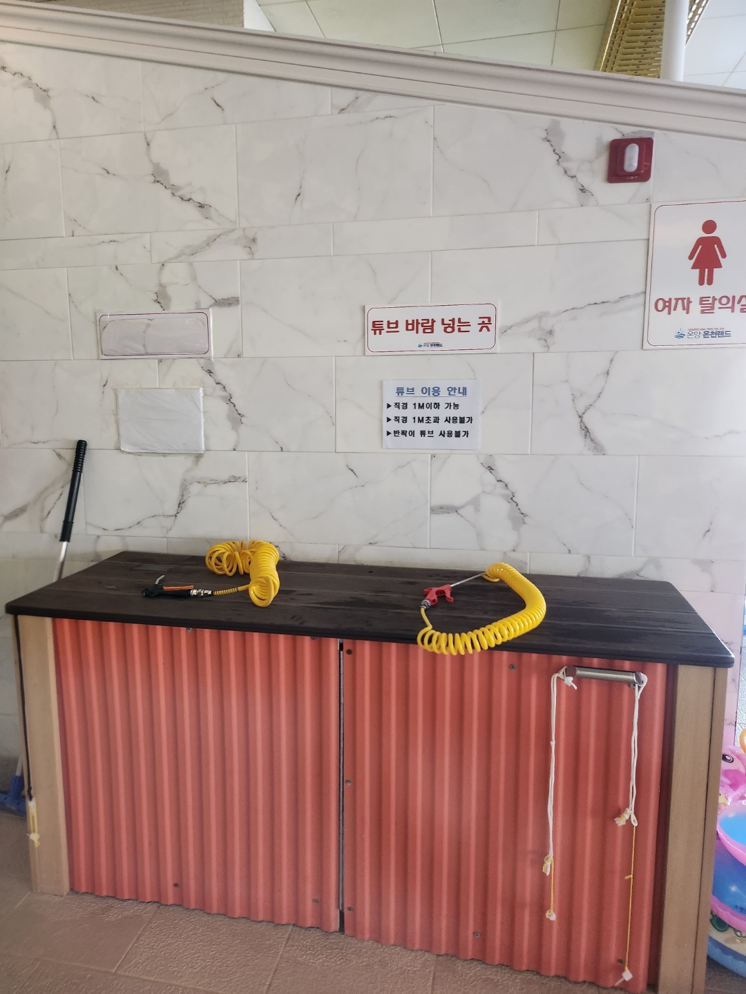 여자탈의실에서 나오면 바로 옆에 튜브 바람 넣는 곳이 있어요