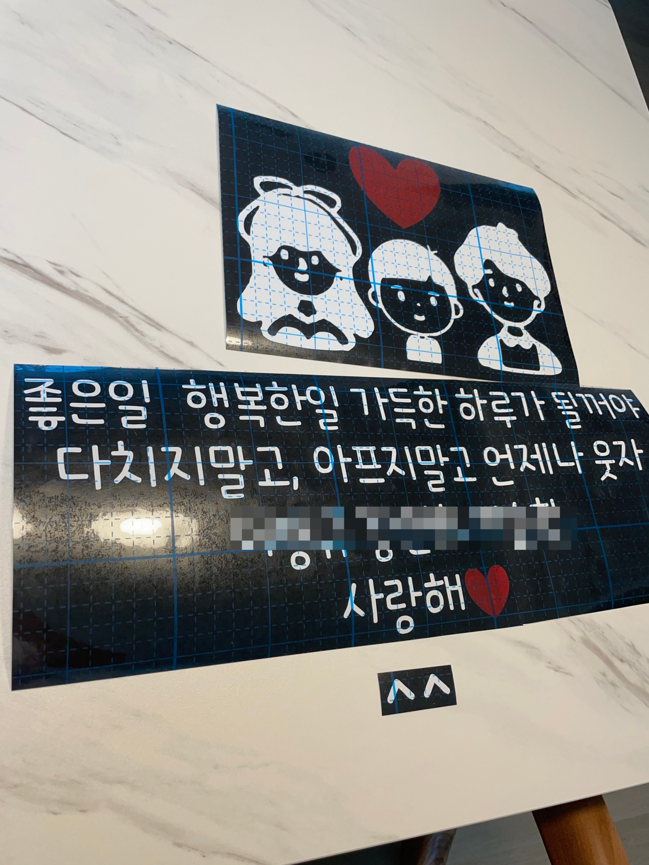 4. 보조시트와 함께 글자 시트지를 천천히 조심히 떼어낸다.