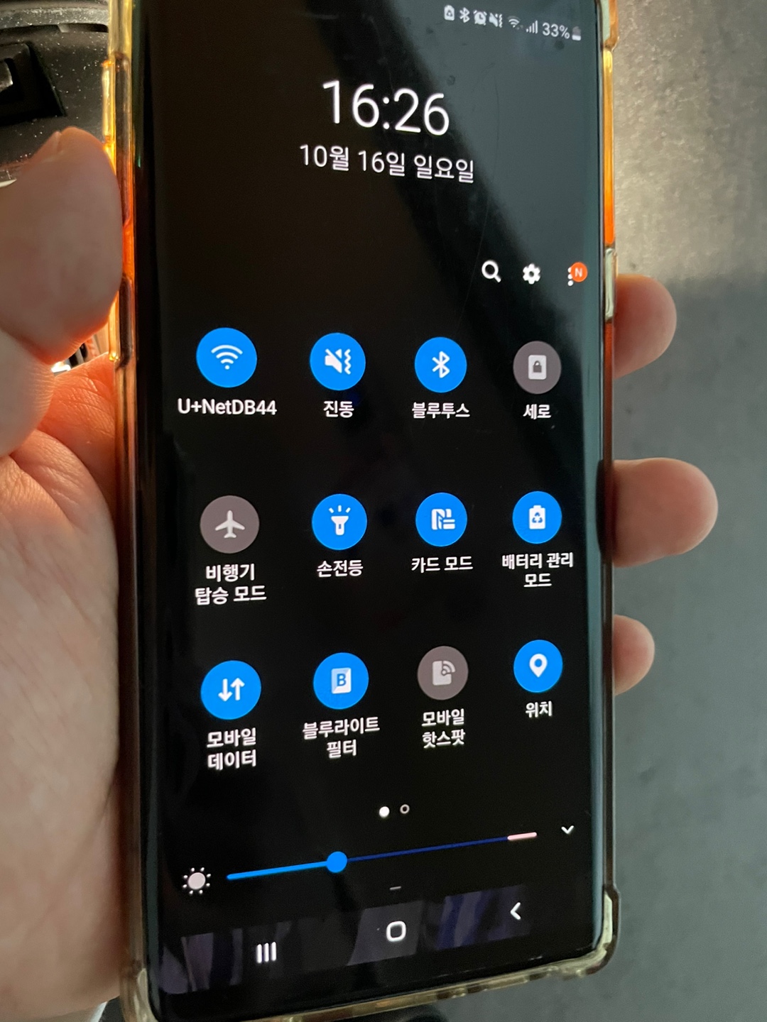 상단바를 내리면 NFC라는 버튼을 터치해요 !!