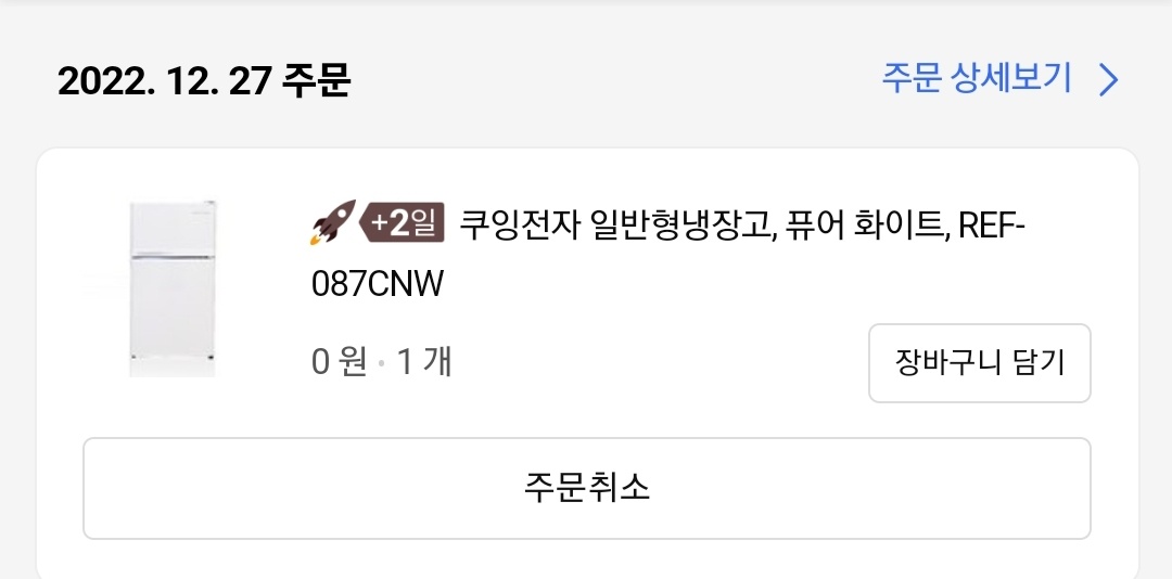 쿠잉전자 일반형 냉장고가 당첨됐어요 ^^