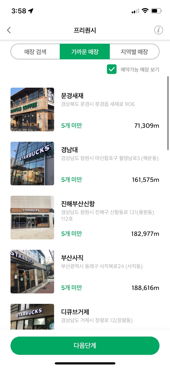 예약 가능 매장은 문경새재 ..... 부산 ..... 제주도 ....